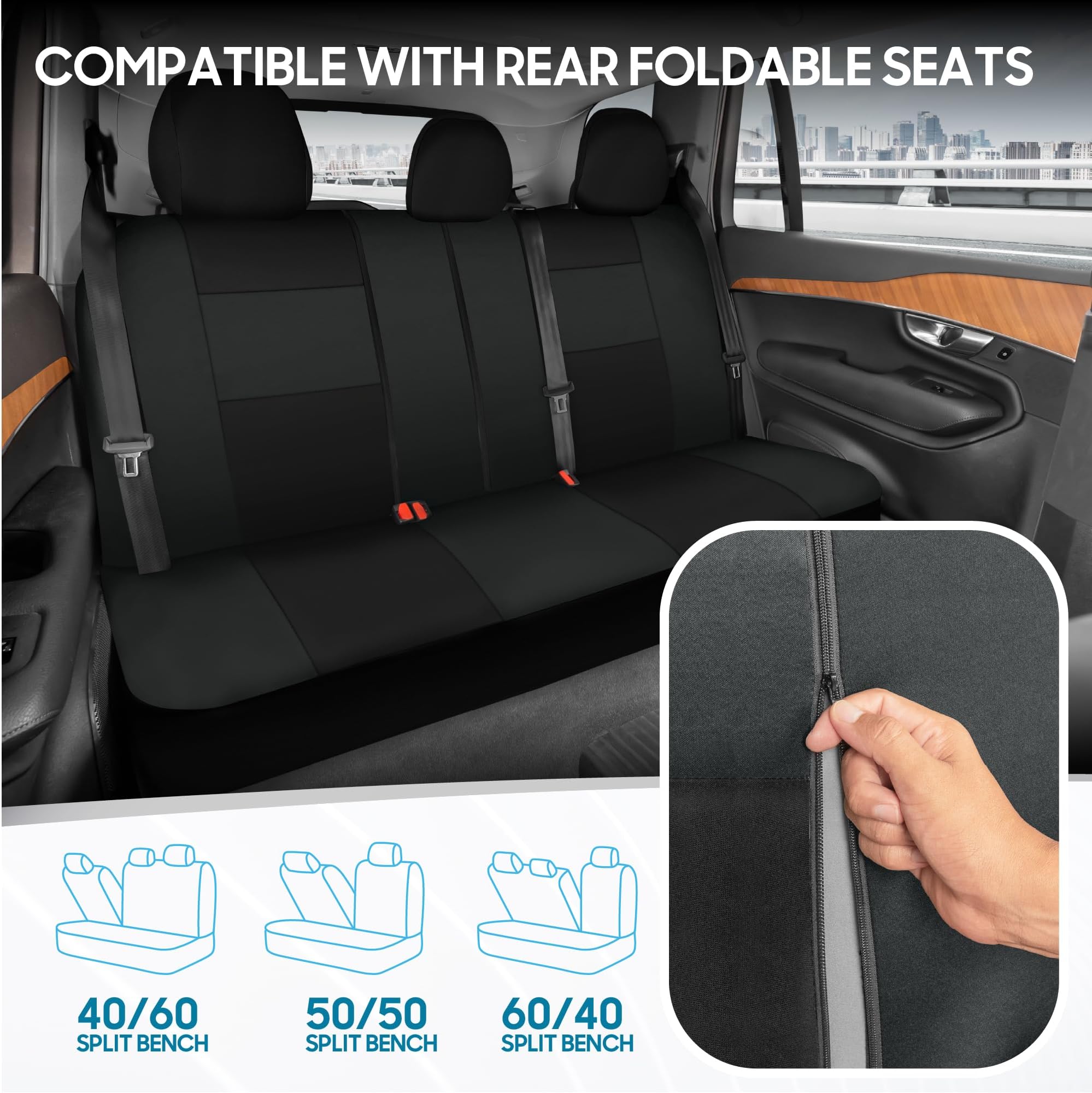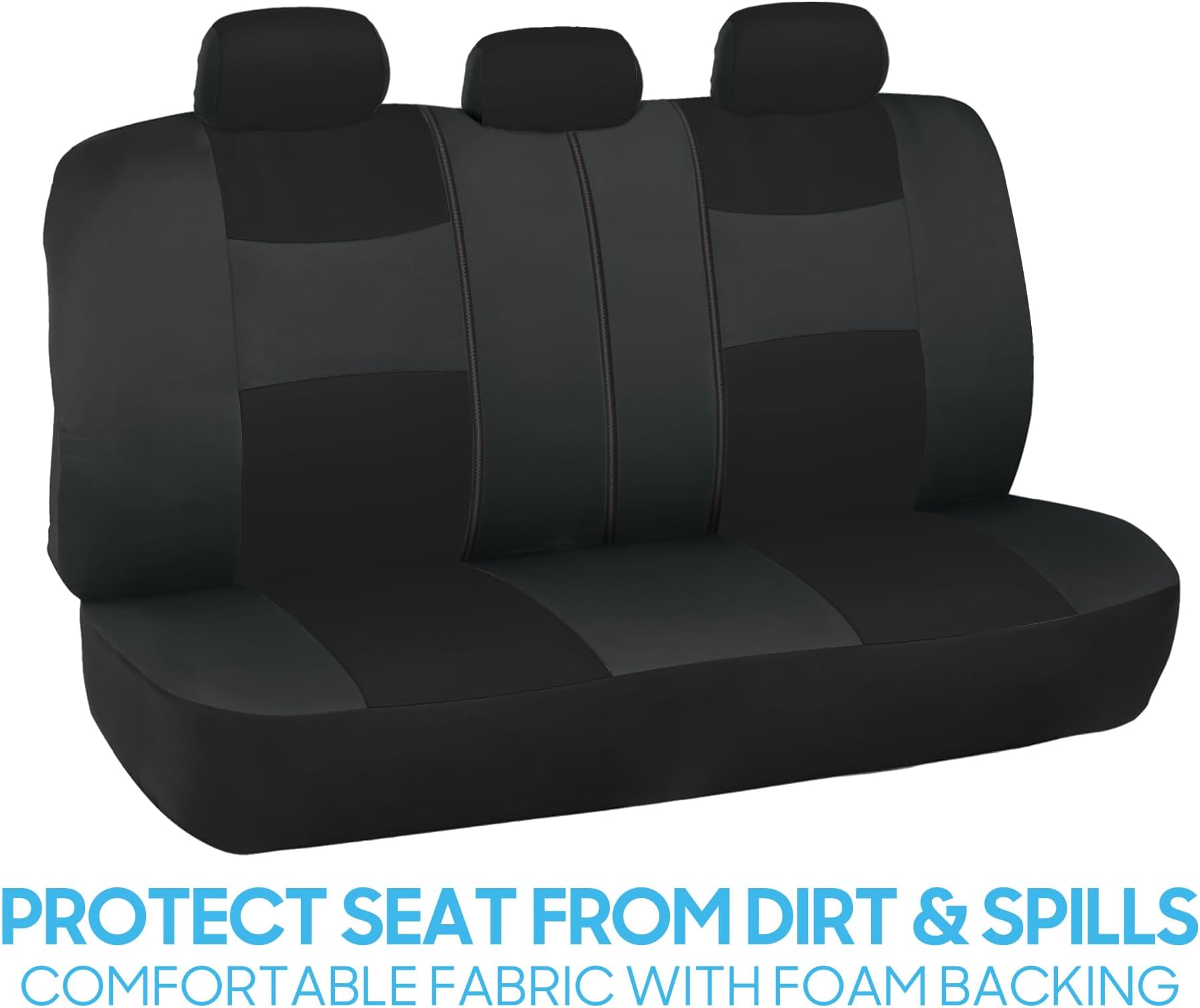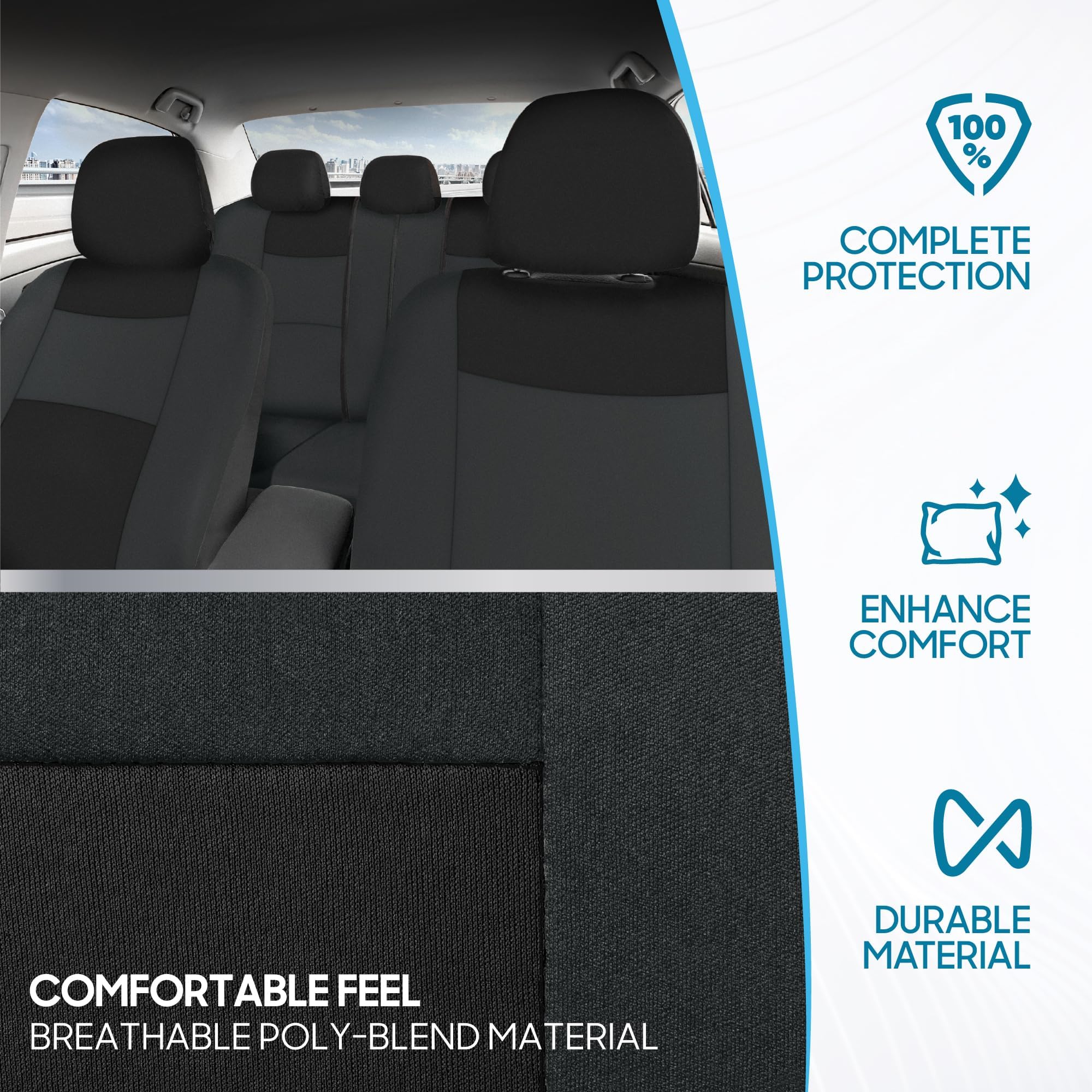 סט כיסויי מושבי רכב BDK PolyPro מלא בצבע פחם הפוך, כיסויי ספסל מפוצלים קדמיים ואחוריים לרכבים, סט כיסויי מושבי רכב קל להתקנה ואביזרים לרכב, משאיות ורכבי שטח - בצבע פחם הפוך