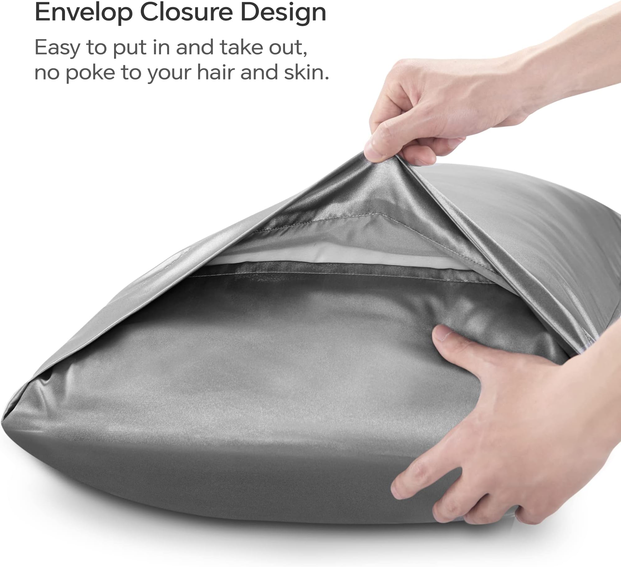כיסוי כרית גוף סאטן BEDELITE, ציפית גוף רכה ומקררת במיוחד לשיער ולעור, כיסוי ציפית ארוכה ומשיי נושם (20"x54", אפור)