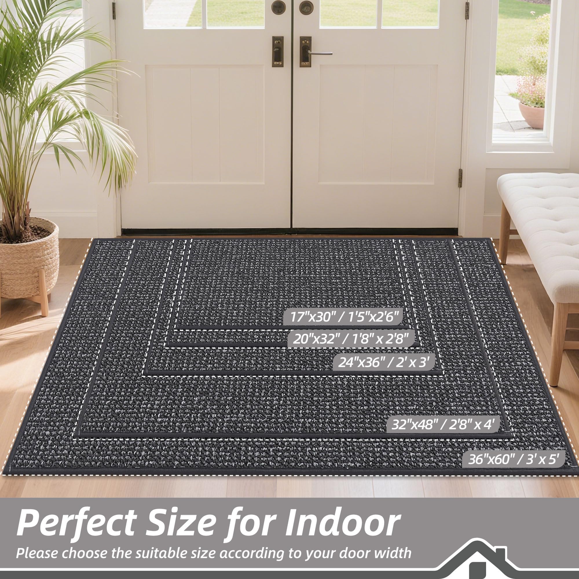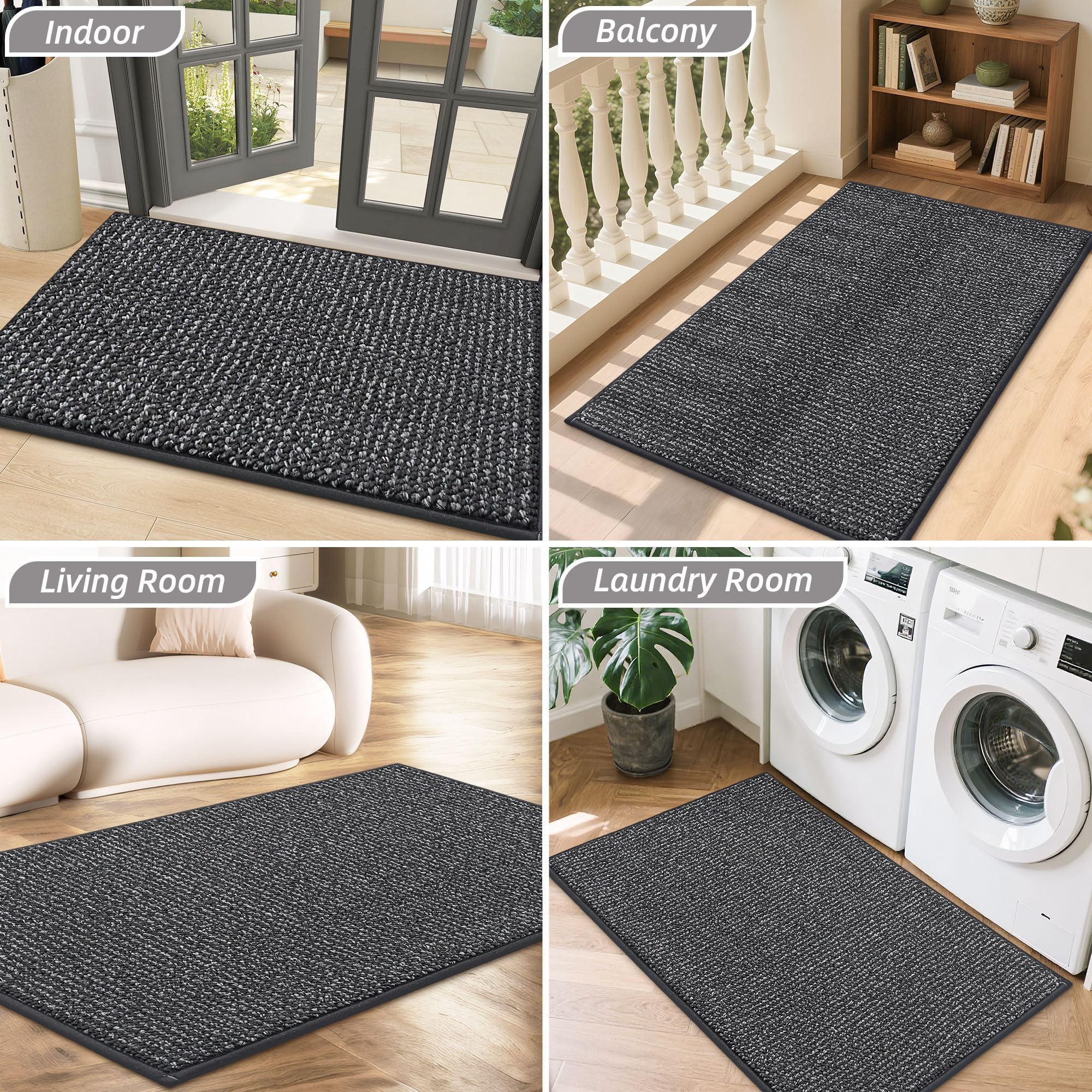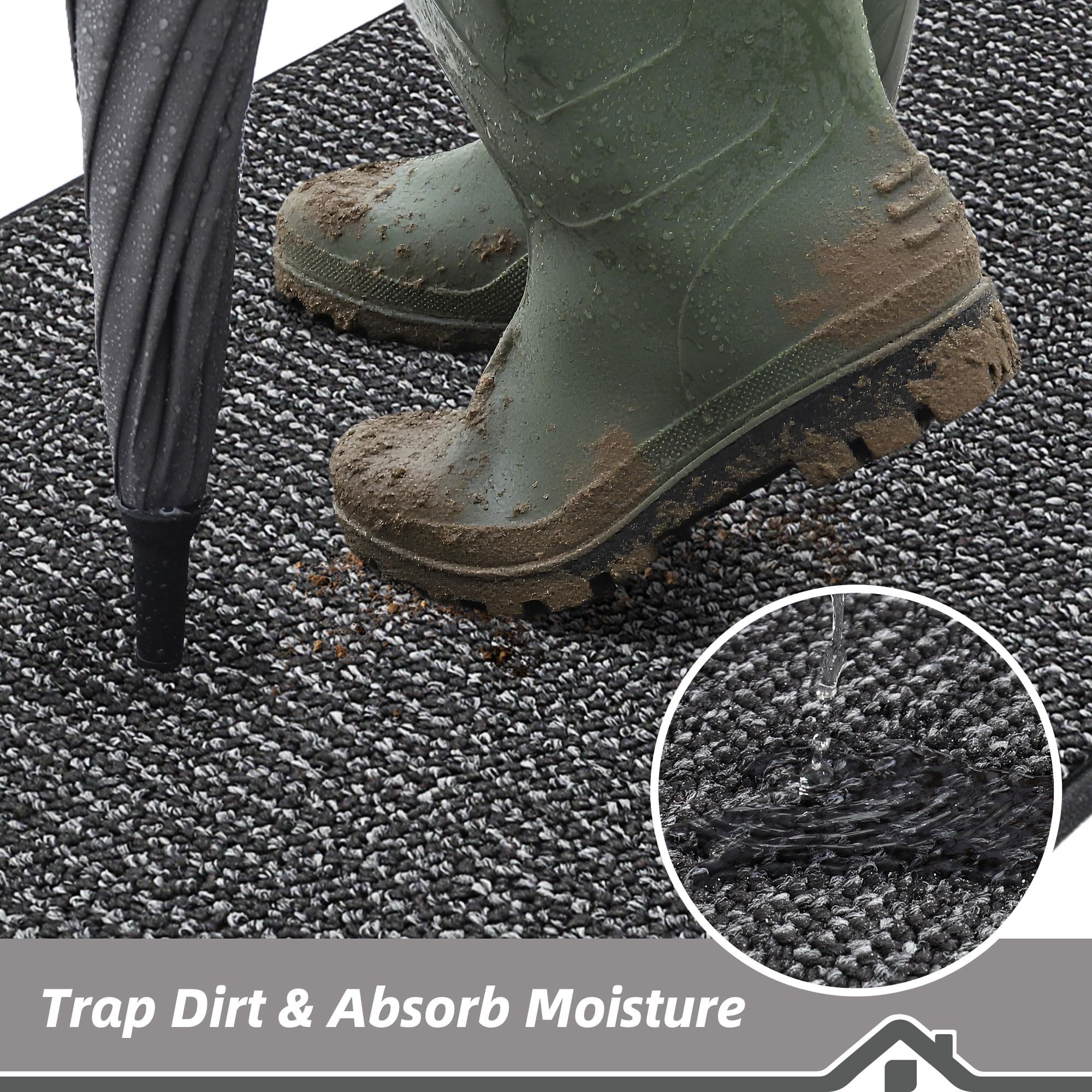 שטיח כניסה רחיצה נגד החלקה של BEQHAUSE 20" x 32", שטיחי כניסה עמידים בפני לכלוך וסופגים, שטיחי רצפה נמוכים לדלת הקדמית והאחורית ולכניסה, פחם