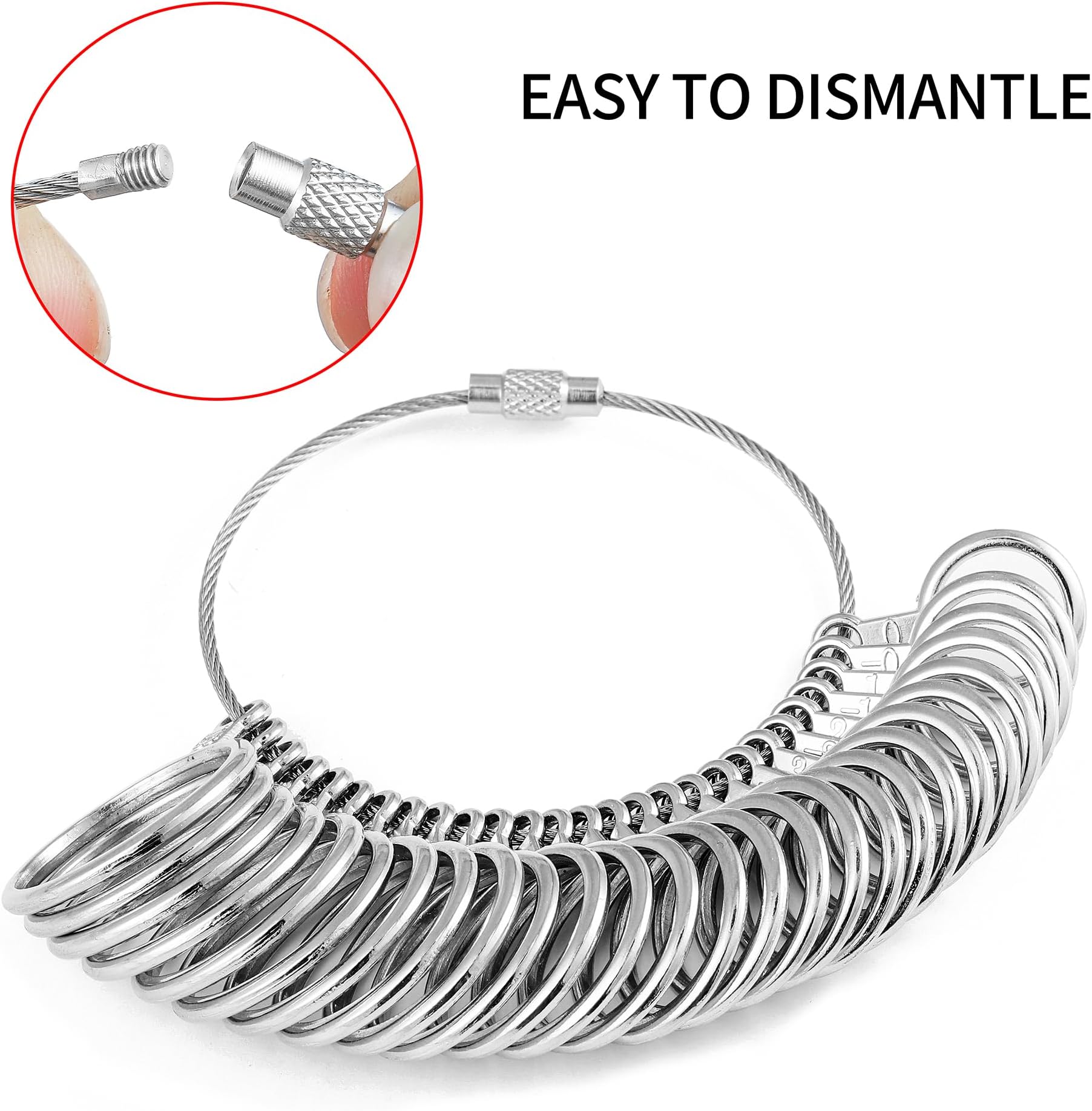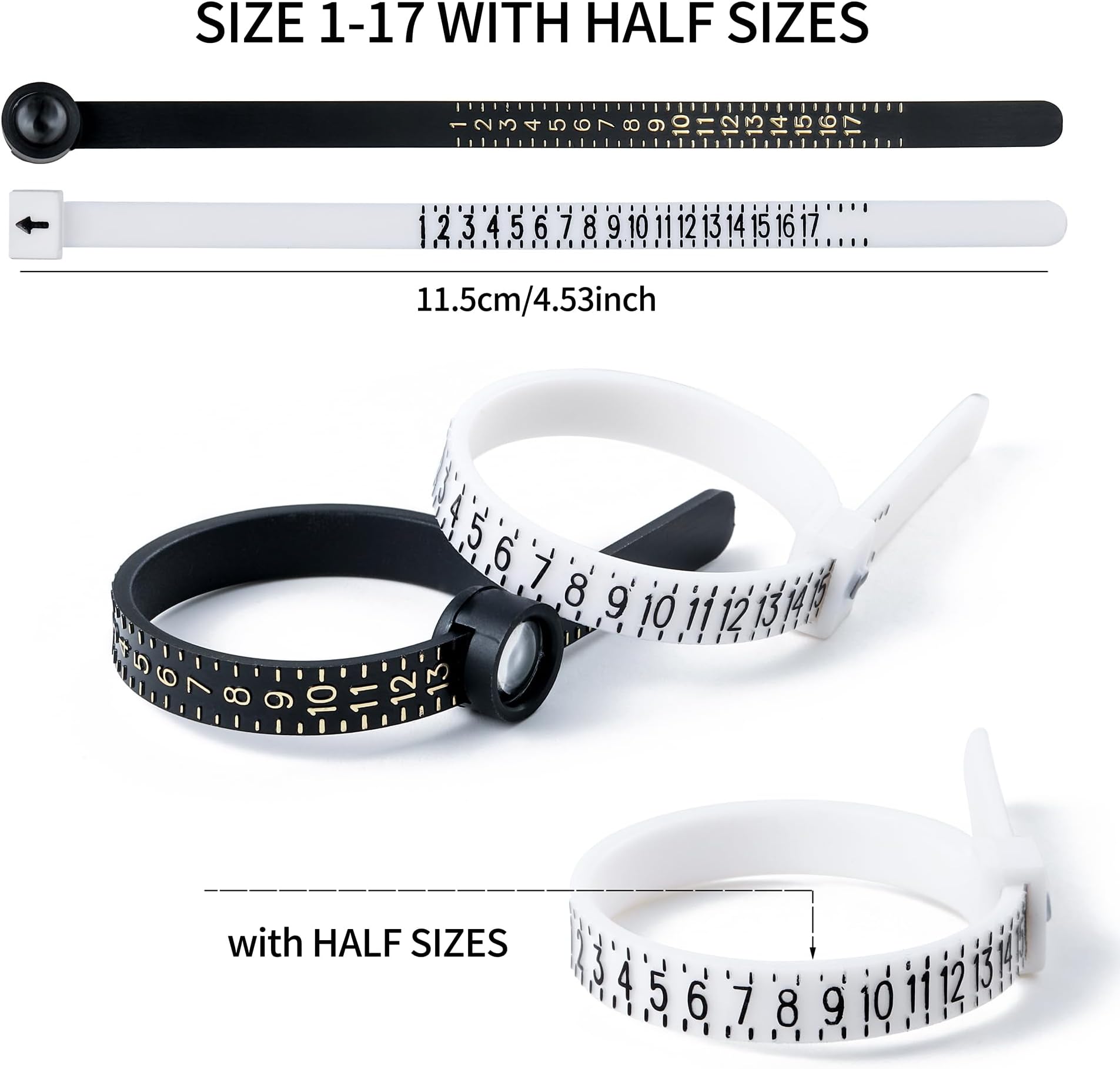 - טווח מדידה: כלי מדידת הטבעות מפלדת אל-חלד מגיע ב-27 גדלים, מידות טבעות אמריקאיות 0-13 וחצי מידות, ומדידות פלסטיק דו-חלקיות למידות טבעות 1 עד 17. מדידת תכשיטים במדויק, נפרדת מניחושים ומצאה את גודל הטבעת המושלם.
