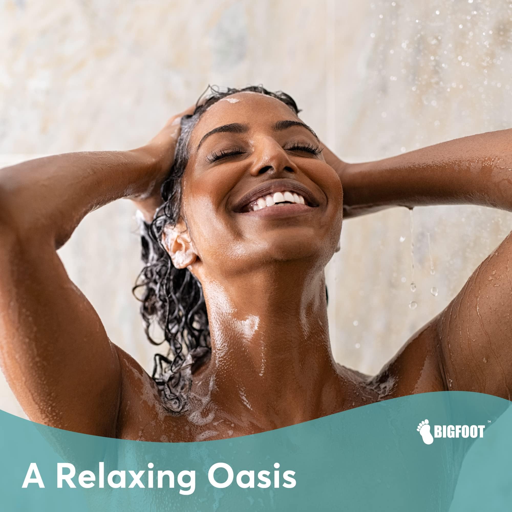 בטנת וילון מקלחת BigFoot – וילון מקלחת קל משקל PEVA 72 x 72 עם 12 לולאות מתכת עמידות בפני חלודה ו-3 משקולות מגנטיות – ללא ריחות ותואם למקלחונים סטנדרטיים, שקוף