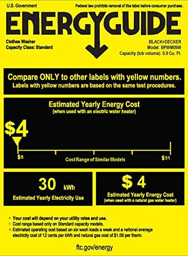 מכונת כביסה ניידת BLACK+DECKER 0.9 רגל מעוקב, מכונת כביסה בקיבולת 6.6 ליברות לבתים ודירות, 5 מחזורי כביסה, מתאם כיור לחיבור מהיר וצינור ניקוז כלולים, מכסה שקוף, BPWM09W, לבן