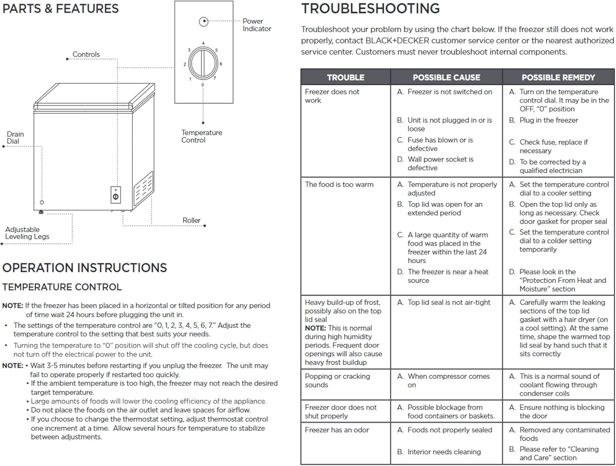 מקפיא קומפקטי BLACK+DECKER 2.0 רגל מעוקב, מקפיא עמוק המכיל עד 70 פאונד של מזון קפוא, סל אחסון נשלף, הפשרה ידנית, לבן