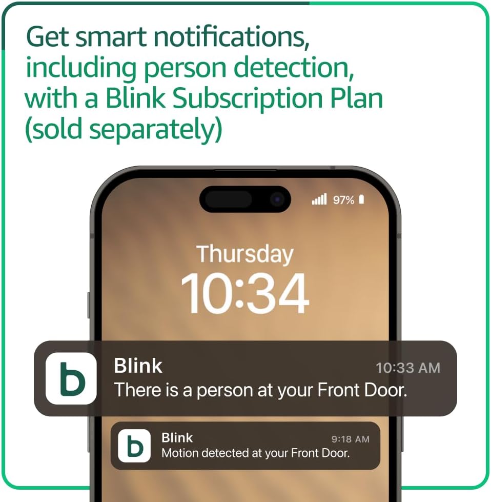 - דעו תמיד מי נמצא - כחלק מתוכנית מנוי של Blink (נמכרת בנפרד), קבלו התראות בכל פעם שמזוהה אדם ותיהנו מתכונות כמו Blink Moments, אשר מחברות קטעים לסרטון אחד לשמירה ושיתוף.