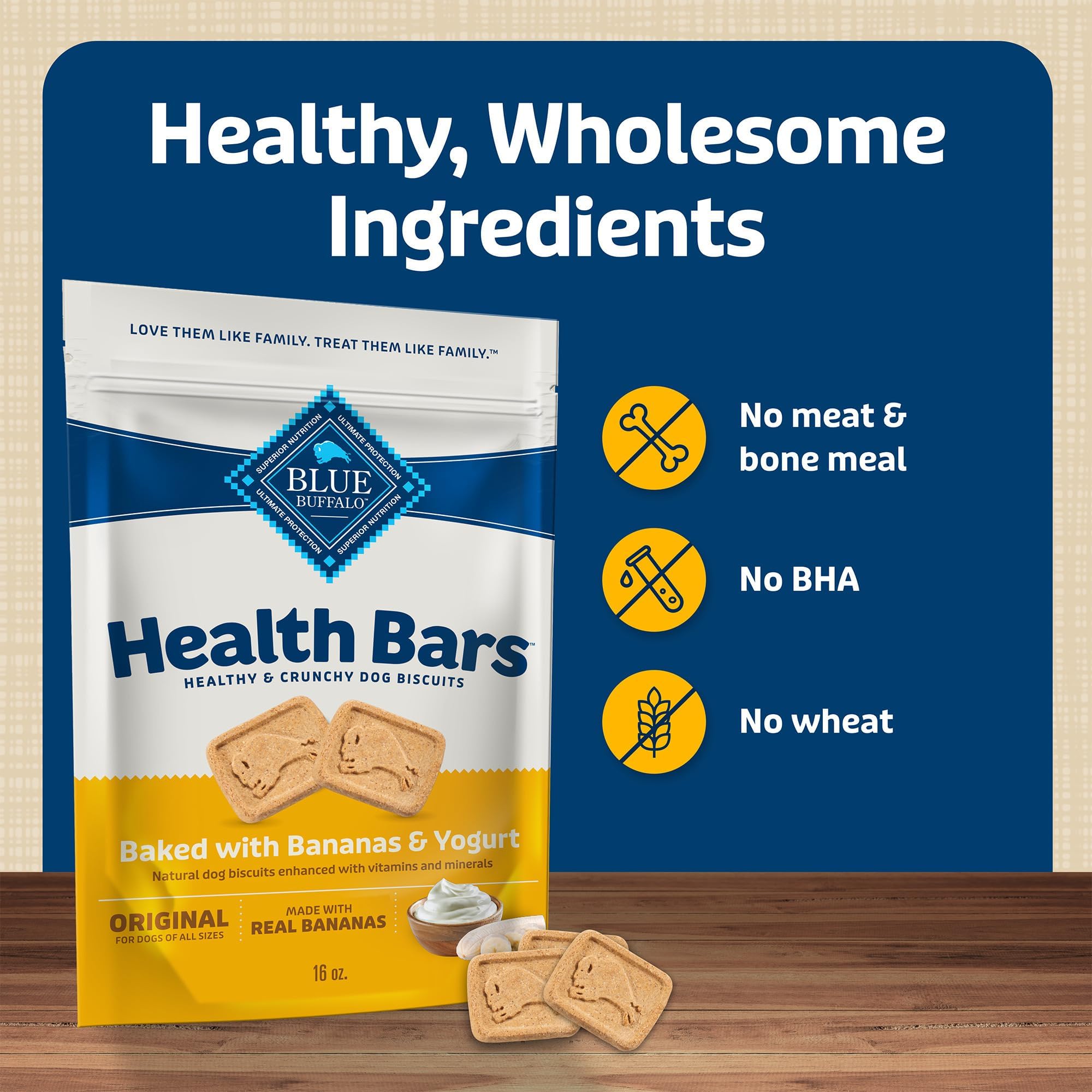 חטיפי בריאות בלו באפלו ביסקוויטים פריכים לכלבים, חטיפי כלבים אפויים בתנור עשויים מרכיבים טבעיים, בננות ויוגורט, שקית 16 אונקיות