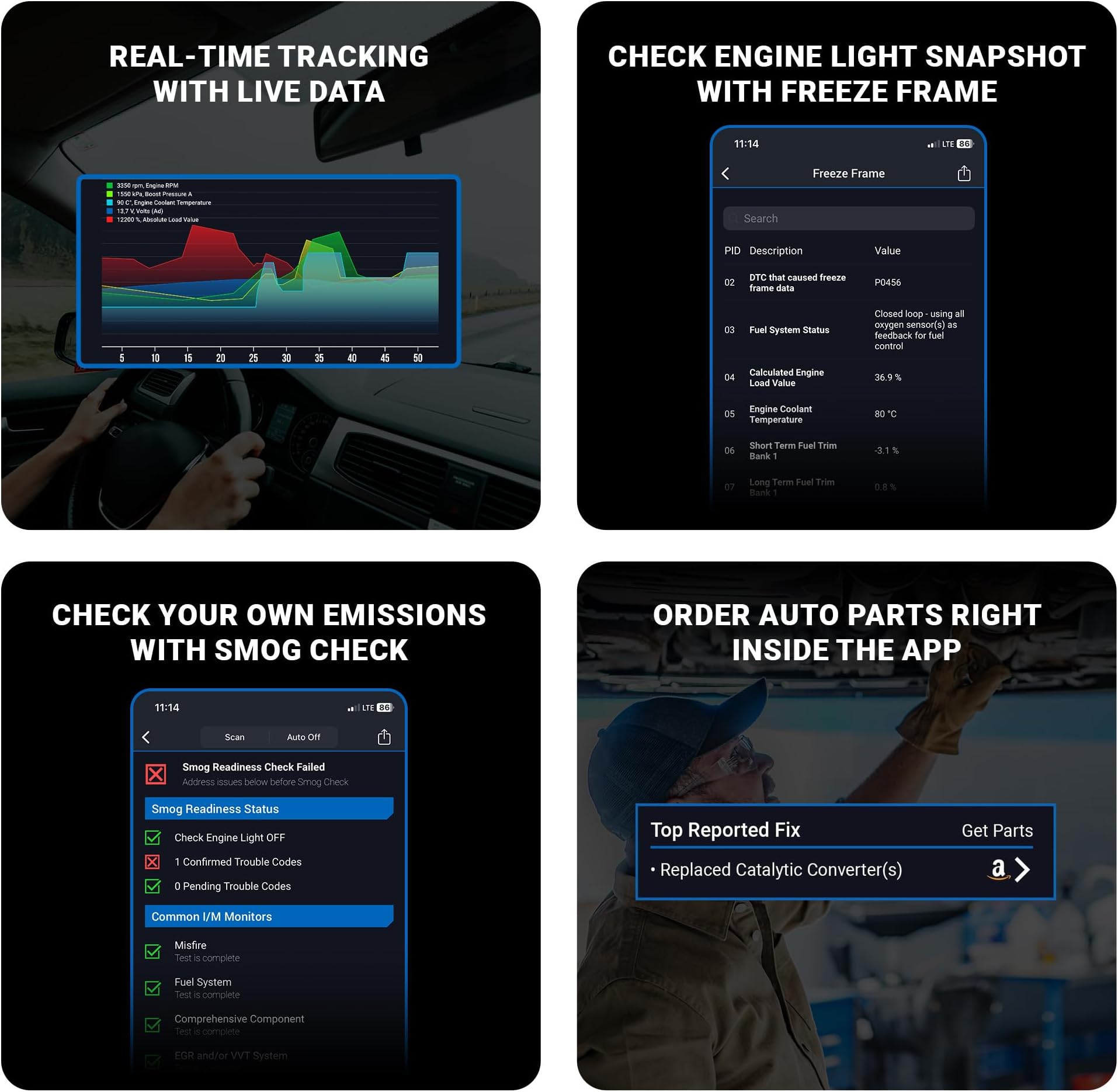 - [קבל את התיקון הנכון וצפה בנתונים בזמן אמת] - BlueDriver הוא הרבה יותר מקורא קוד לרכב, והוא כלי אבחון. תקבלו דוחות תיקון ללא הגבלה עם סיבות אפשריות ותיקונים, בנוסף לניטור תקינות בזמן אמת בזמן הנהיגה בעזרת תכונת הנתונים בזמן אמת.