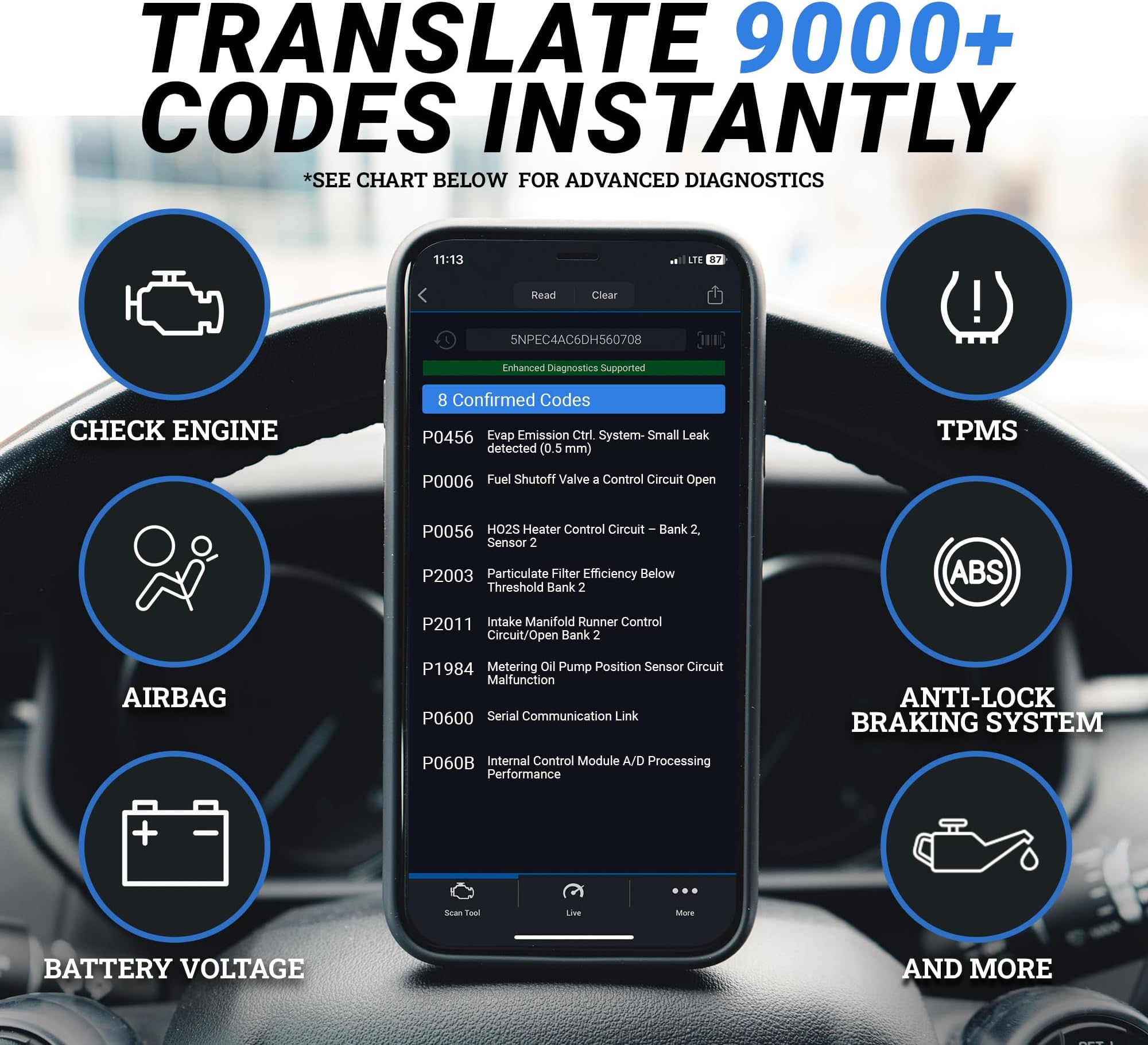 - [סורק OBD2 מקצועי] - BlueDriver היא הדרך הקלה ביותר לסרוק ולהבין את הרכב שלך כמו מכונאי מקצועי. קרא ונקה את קודי התקלה של המכונית שלך ובדוק את נורית המנוע.