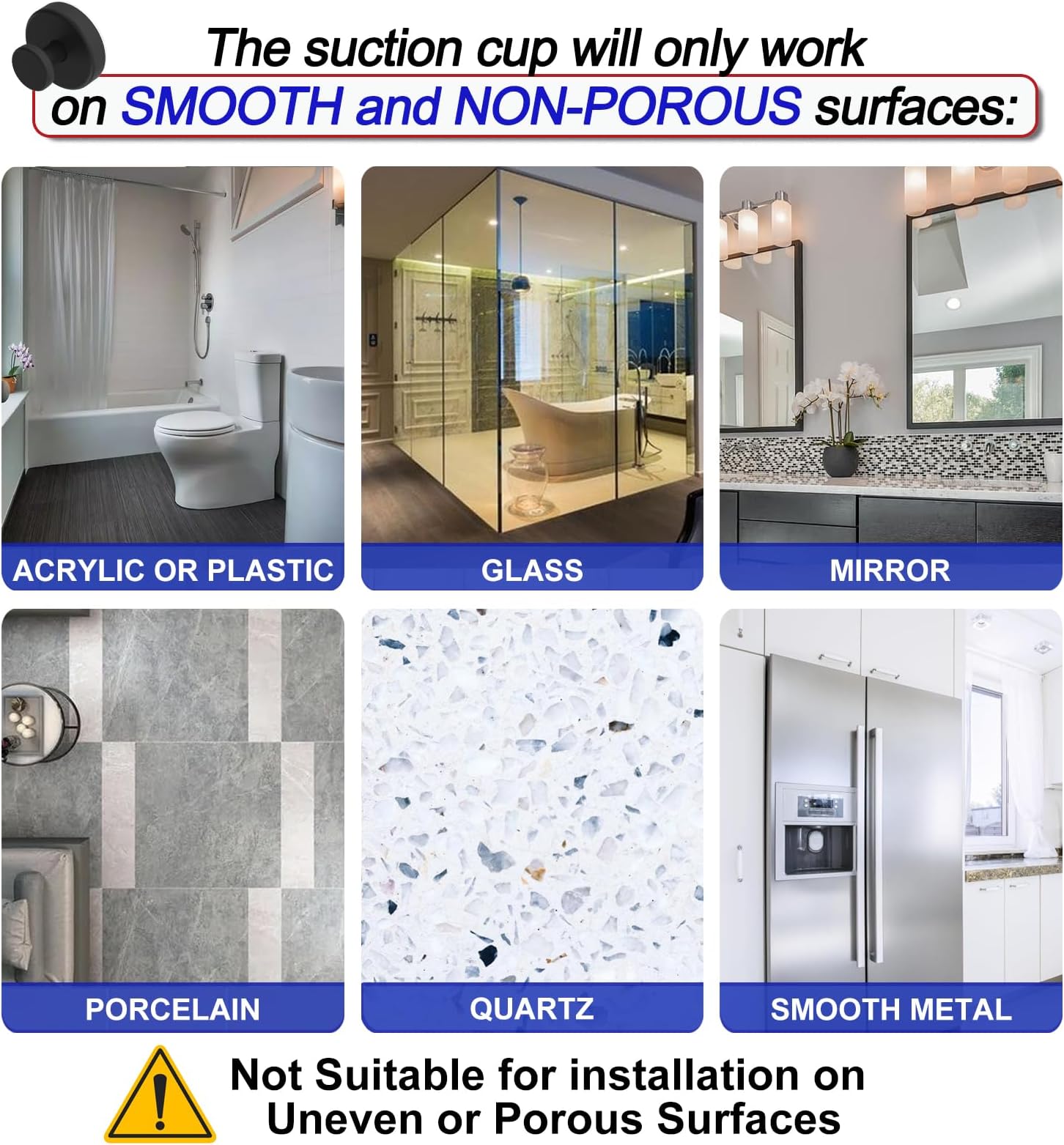 - [משטחי יישום]: ווים אלו מתאימים לזכוכית, מראות, אריחי פורצלן מבריקים, אקריליק, פלסטיק, נירוסטה חלקה, קוורץ, למינציה ומשטחים חלקים אחרים.