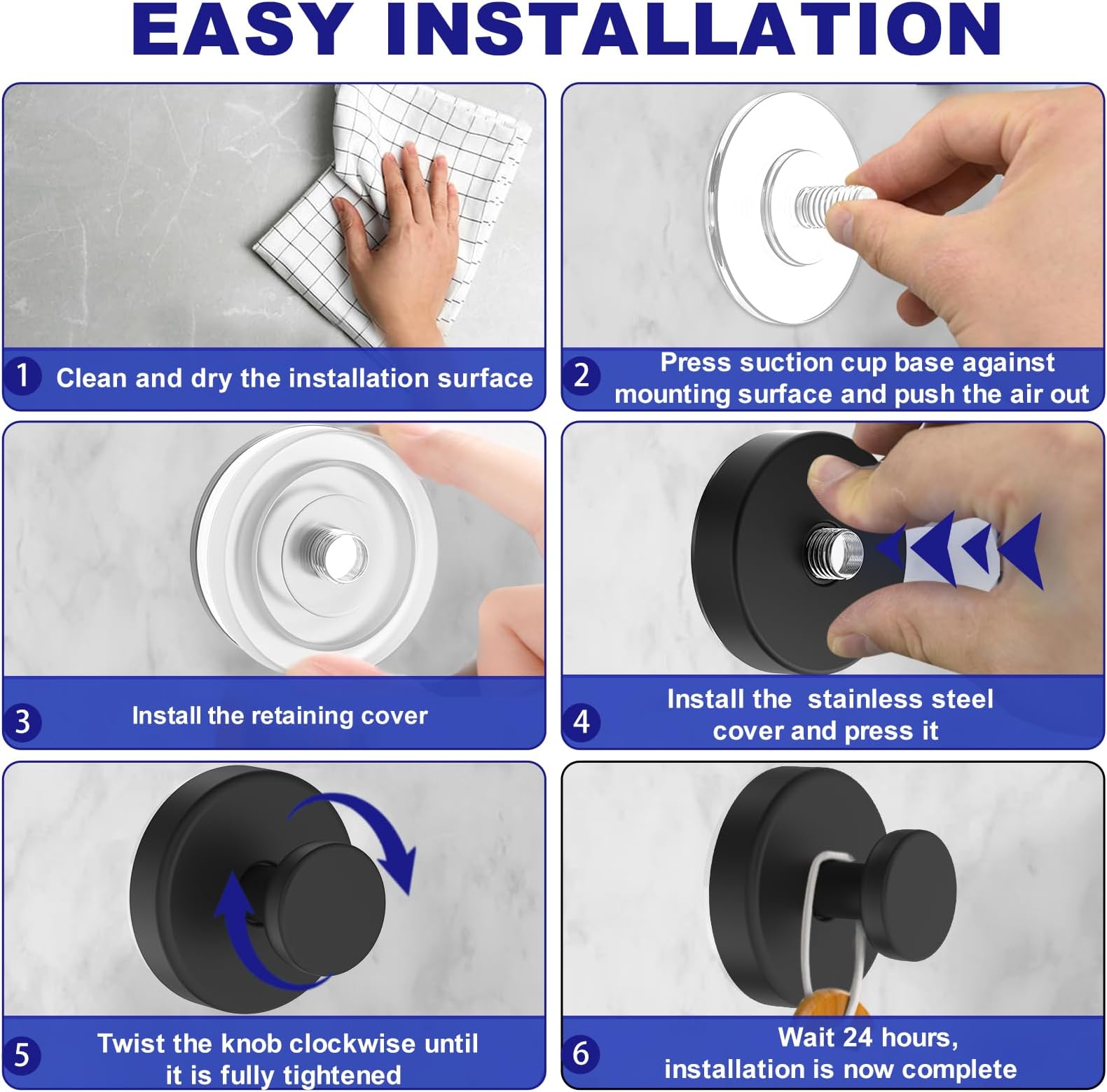 - [בטוח למקלחת וחלודה]: ווים למקלחת מפלדת אל-חלד + בסיס יניקה מסיליקון סופר עמידים בפני אדים/התזות מים יומיומיות. ניתנים להסרה ללא שאריות - אידיאליים לצורכי וו מגבות של שוכרים.