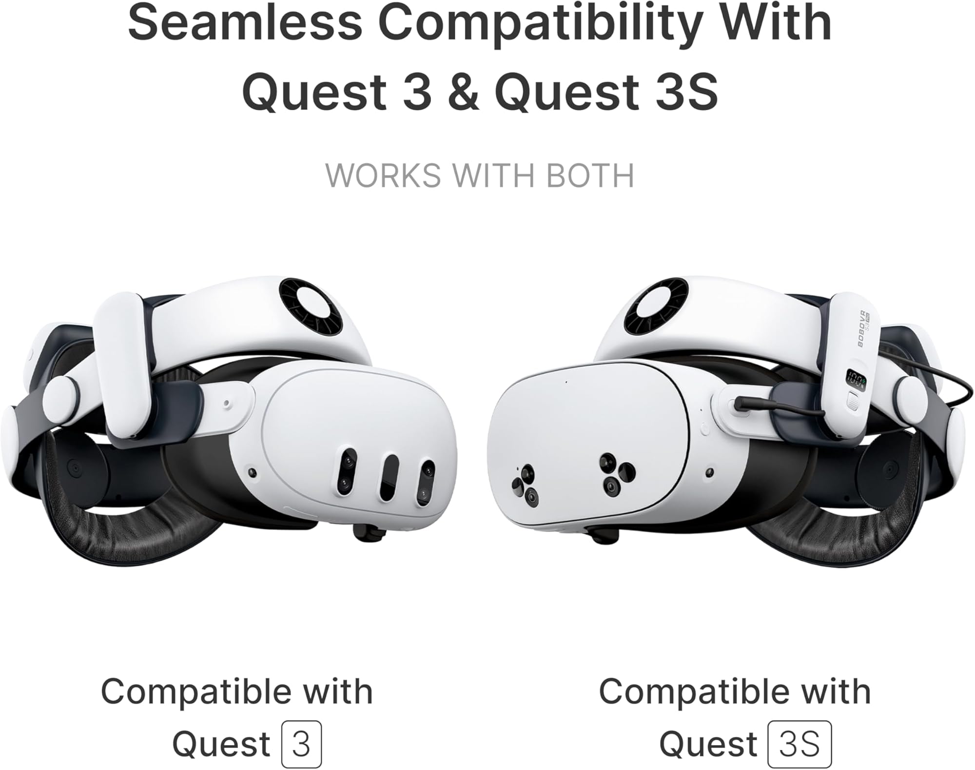 - תואם ל-Meta Quest 3/Quest 3s: ארכיטקטורת הסוללה החדשה, שעדיין משתמשת בעיצוב החלפת הכוח החדשני של BOBOVR, מפרידה את מודול הפריקה מחבילת הסוללה, ומפחיתה את חום חבילת הסוללה. היא גם משפרת את יעילות הפריקה ב-6% בהשוואה לדגם הישן, ומוסיפה תזכורות קוליות לסוללה חלשה ורמות סוללה מדויקות;