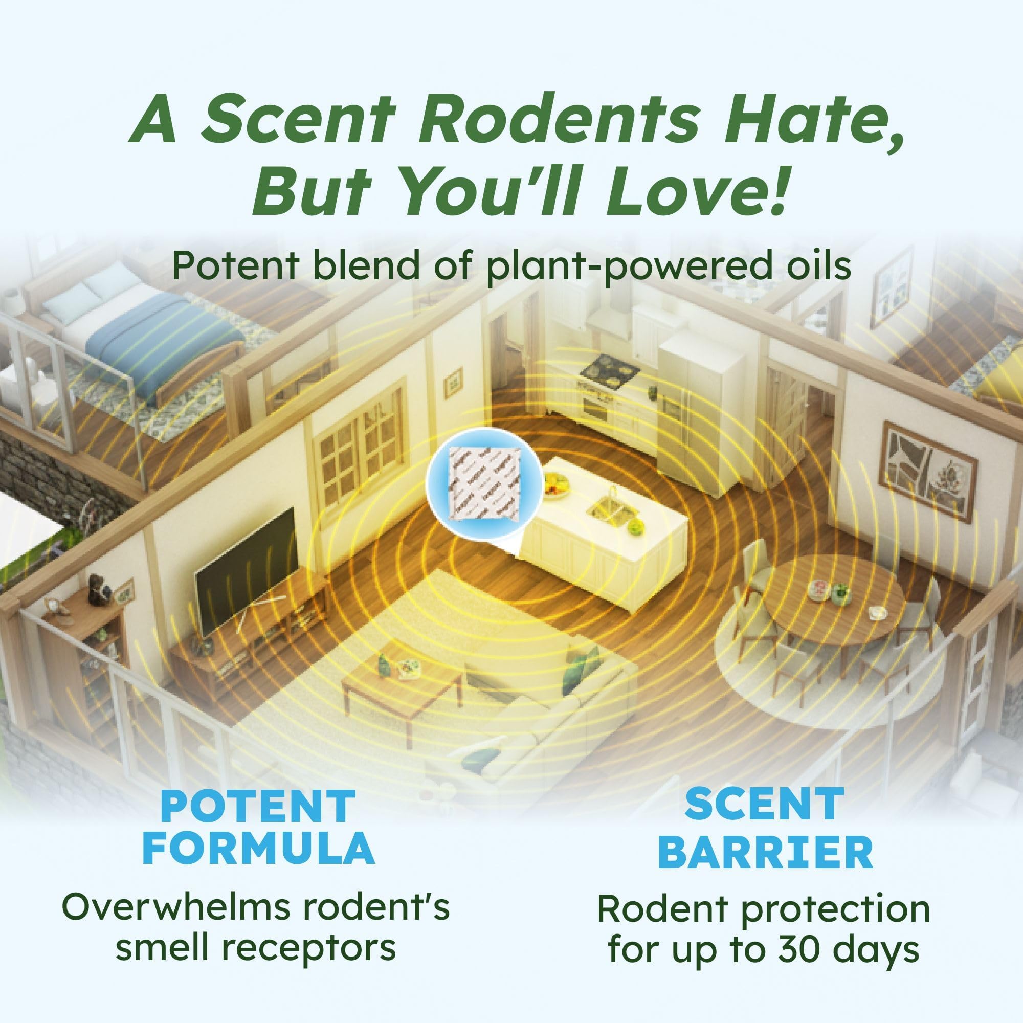 - דוחה מכרסמים עוצמתי לבית: יוצר מחסום ריח יעיל שמרתיע עכברים ומכרסמים מלקנן בבית, בארונות, במזווה ובאזורי אחסון; שקיות דוחי עכברים טבעיות מספקות הגנה פנימית לאורך זמן.