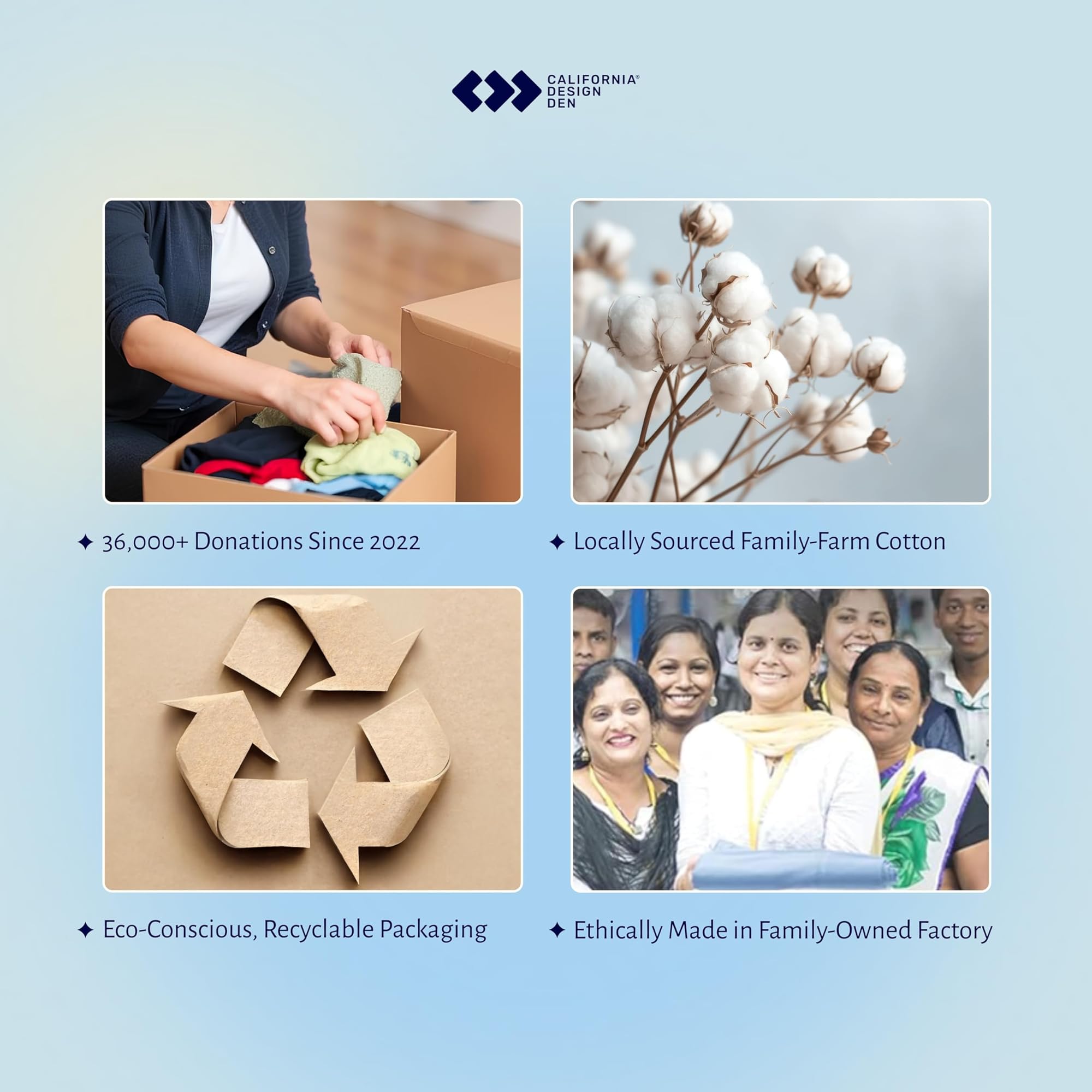 - המחויבות שלנו: אנו נותנים עדיפות לנוחות, קהילה וקיימות. מאז 2022, תרמנו למעלה מ-36,000 פריטי מצעים לצדקה בארה"ב והסרנו פלסטיק מהאריזות שלנו. הסדינים מיוצרים במפעל המשפחתי שלנו בהודו בקפידה ובבדיקת איכות - ספירת החוטים עשויה להשתנות ב-±5% עקב מגבלות ייצור סטנדרטיות. תיהנו מיוקרה במחיר סביר והחזרות ללא טרחה לשינה טובה יותר בלילה.