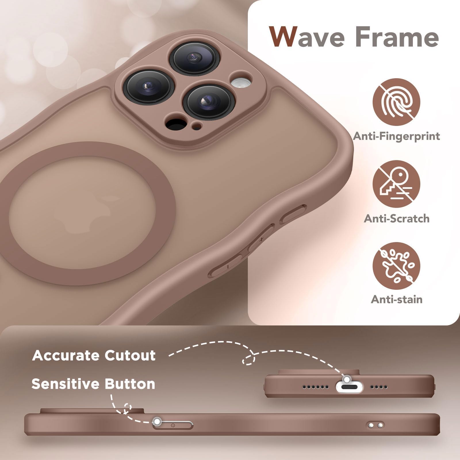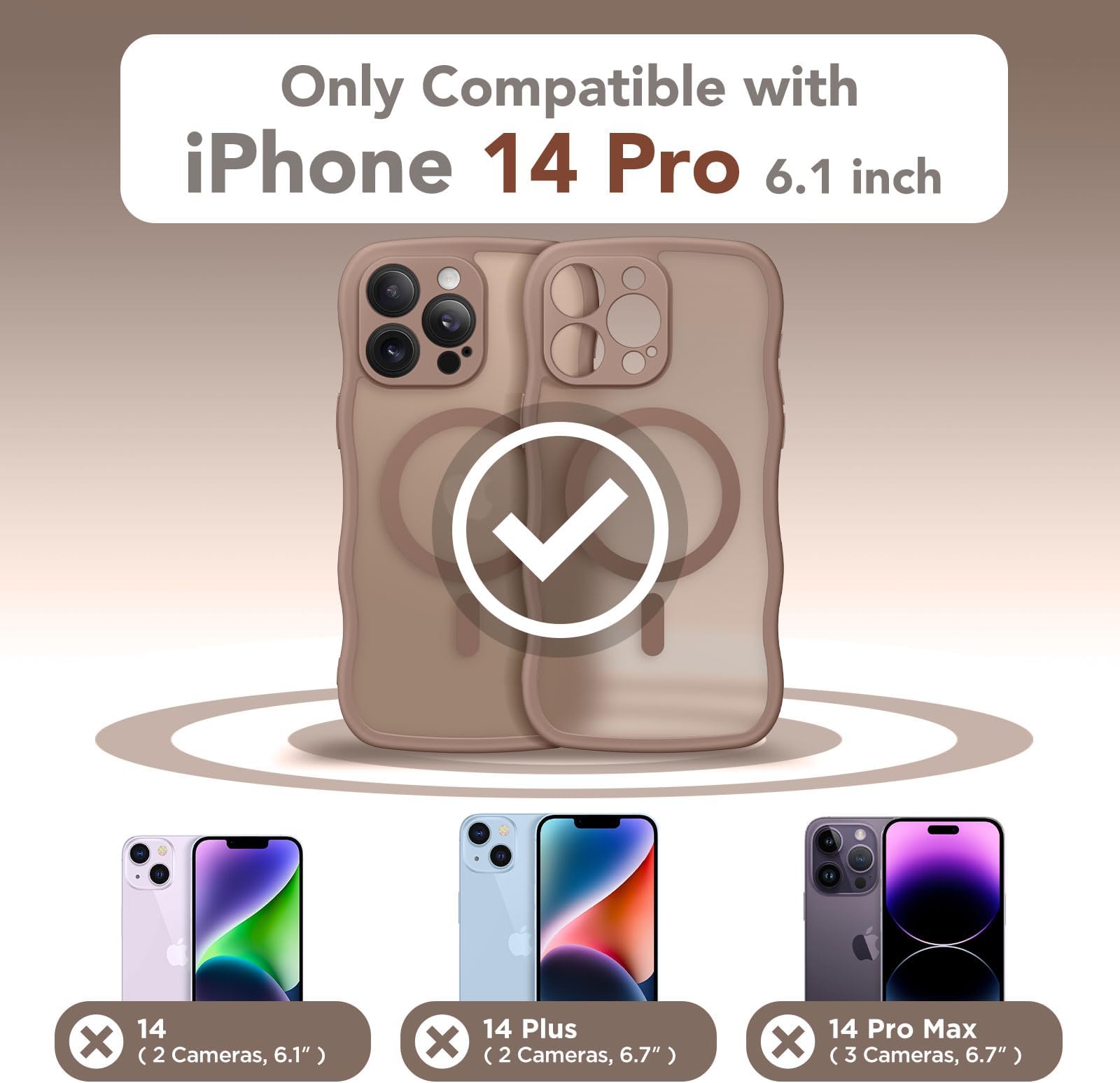כיסוי חמוד CAPRARO לאייפון 14 פרו, תואם ל-MagSafe, [Curly Wave Edge] [הגנה מלאה על המצלמה] [הגנה מפני נפילות בגודל 14 רגל] כיסוי טלפון מגנטי ל-14 פרו 6.1 אינץ', חום