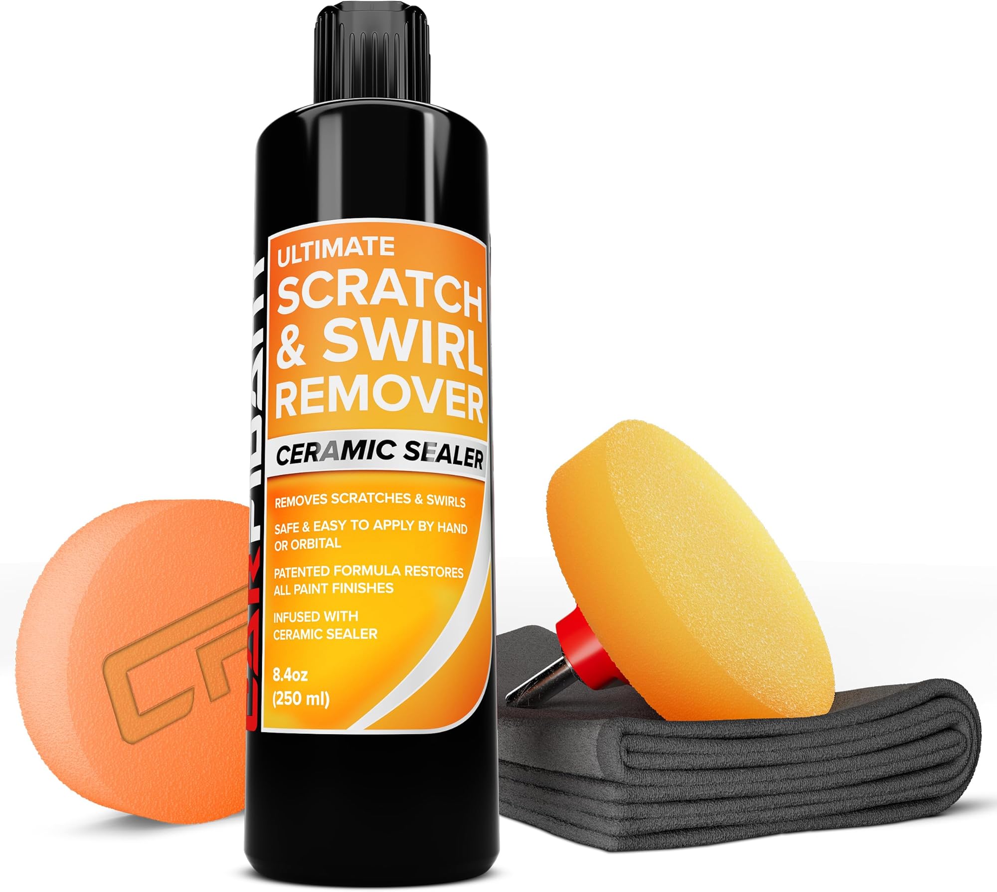 מסיר שריטות וסחרחורות של Carfidant - מסיר שריטות לצבע רכב - תרכובת ליטוש לרכב - ערכת משקם צבע עם פד, מיקרופייבר ומקדחה