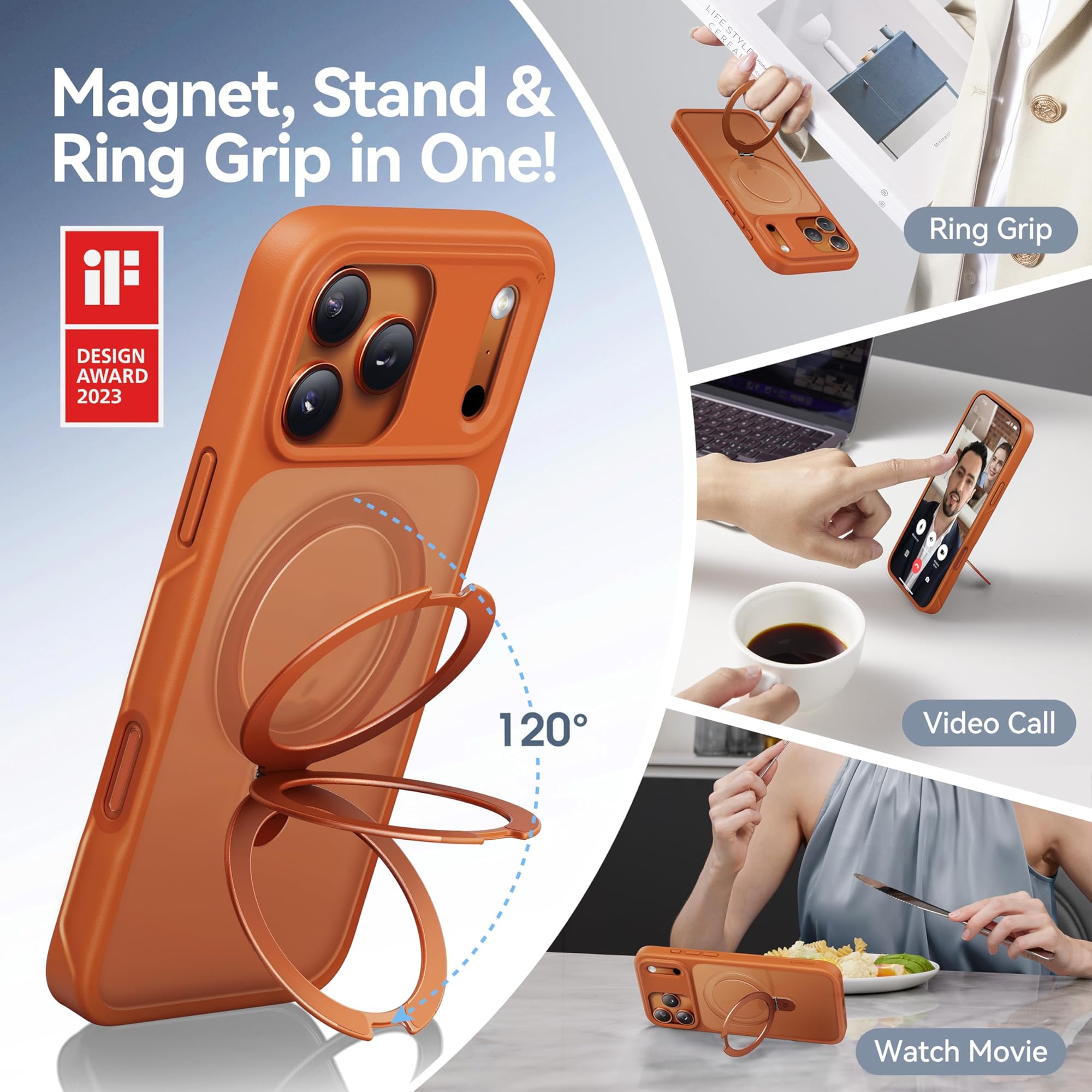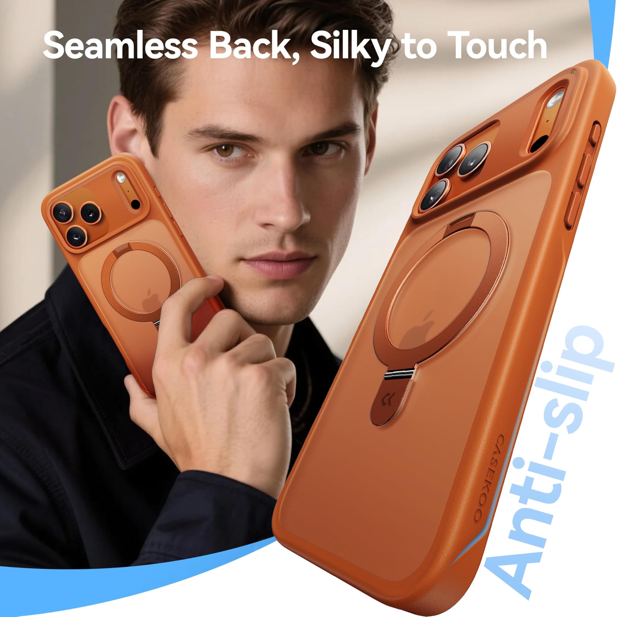 כיסוי מגנטי במיוחד CASEKOO לאייפון 17 פרו מקס [הגנה מפני נפילות צבאיות] [תואם ל-MagSafe] כיסוי דק מט שקוף ועמיד בפני זעזועים לאייפון 17 פרו מקס בגודל 6.9 אינץ', כתום