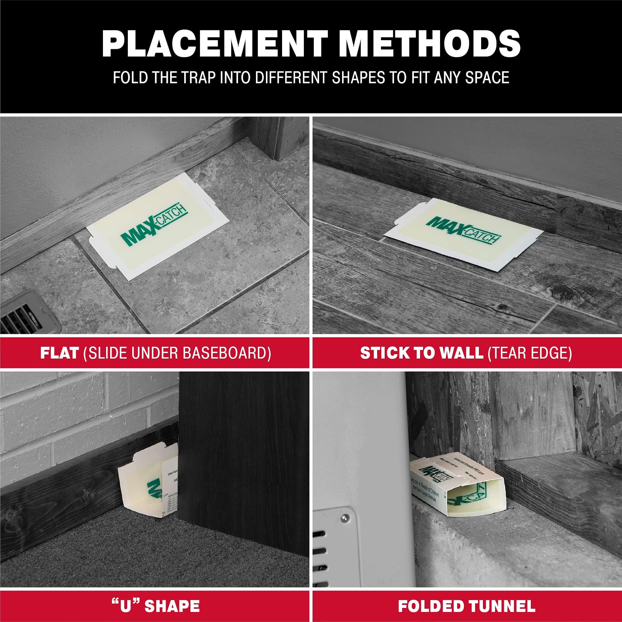 - מוכן לשימוש: מלכודות דבק Max-Catch מיועדות לשימוש ללא פיתיון. לשימוש מיטבי, השאירו את המלכודת עם נייר עליה כדי שמזיקים יוכלו להסתגל למלכודת, ולאחר מכן הניחו לוחות דבק לאורך שבילי מכרסמים ידועים או חשודים. המלכודות נועדו למשוך חרקים, נמלים, עכברים, חולדות, ג'וקים, עכבישים, צרצרים ומזיקים ומכרסמים אחרים.
