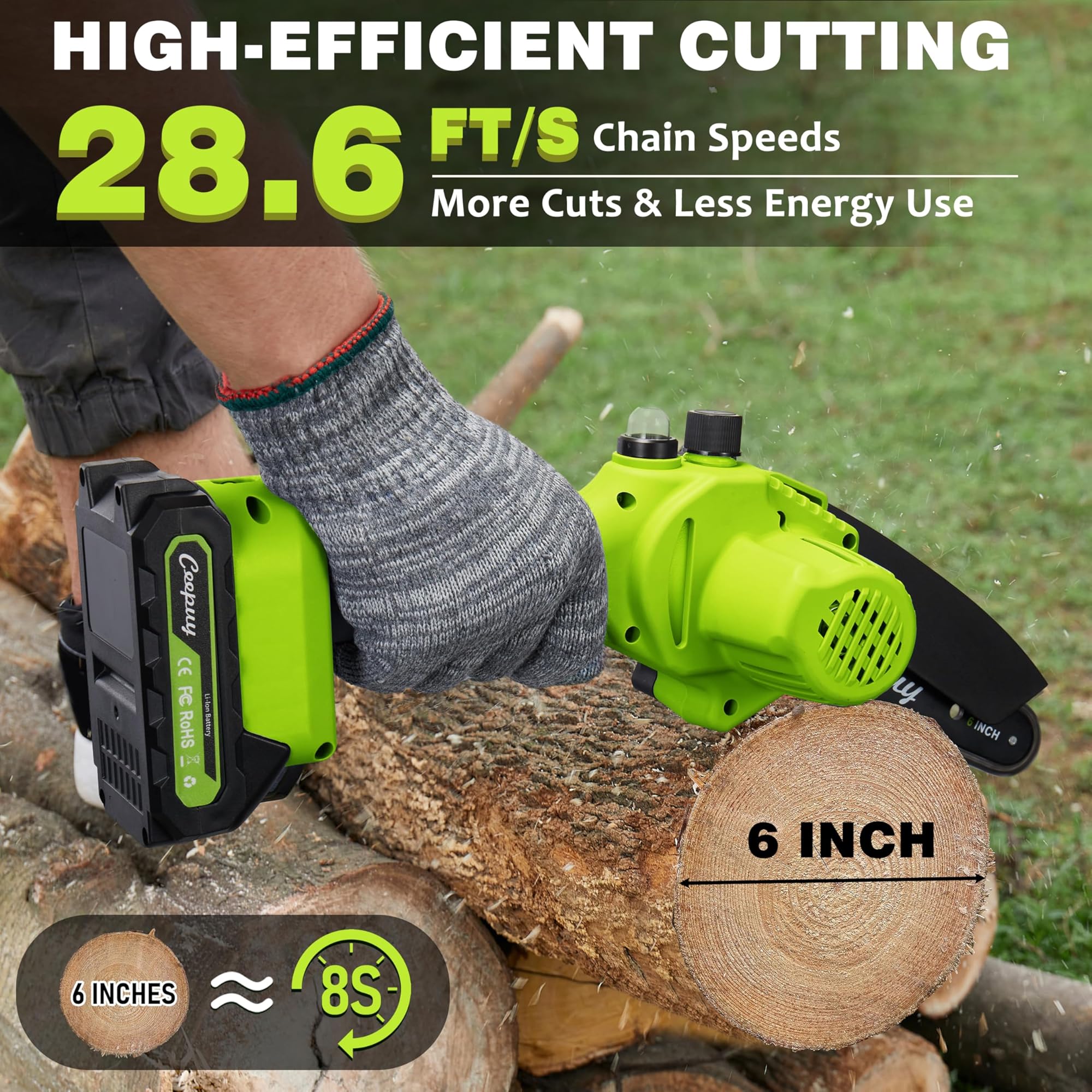 - ✔【מנוע סופר נחושת טהורה משודרג ויעיל】מסור שרשרת מיני אלחוטי בגודל 6 אינץ' של Ceepuy מתגאה במנוע בהספק גבוה של 880 וואט. מהירות גבוהה של 28.6 רגל לשנייה יכולה לחתוך ביעילות בול עץ בקוטר 6 אינץ' תוך 8 שניות בלבד, מה שמפחית משמעותית את זמן החיתוך. אידיאלי גם לבית וגם לעבודה, הוא כורת בקלות עצים נפוצים או בולי עץ גדולים בקלות וביעילות.