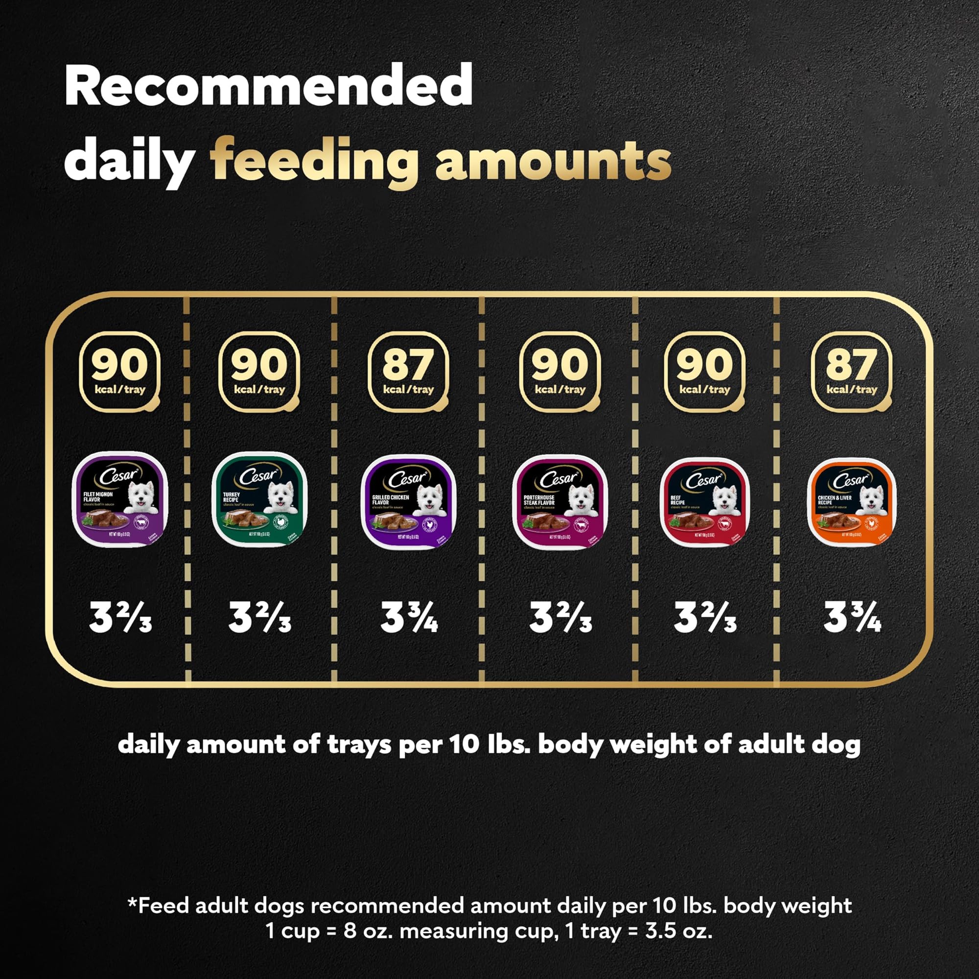 מזון רטוב לכלבים סזאר קלאסי ברוטב עוף בגריל, פילה מיניון, סטייק פורטרהאוס, בקר, עוף וכבד והודו אריזה מגוונת 3.5 אונקיות מגשי קילוף קלים (36 יחידות, חבילה של 1)