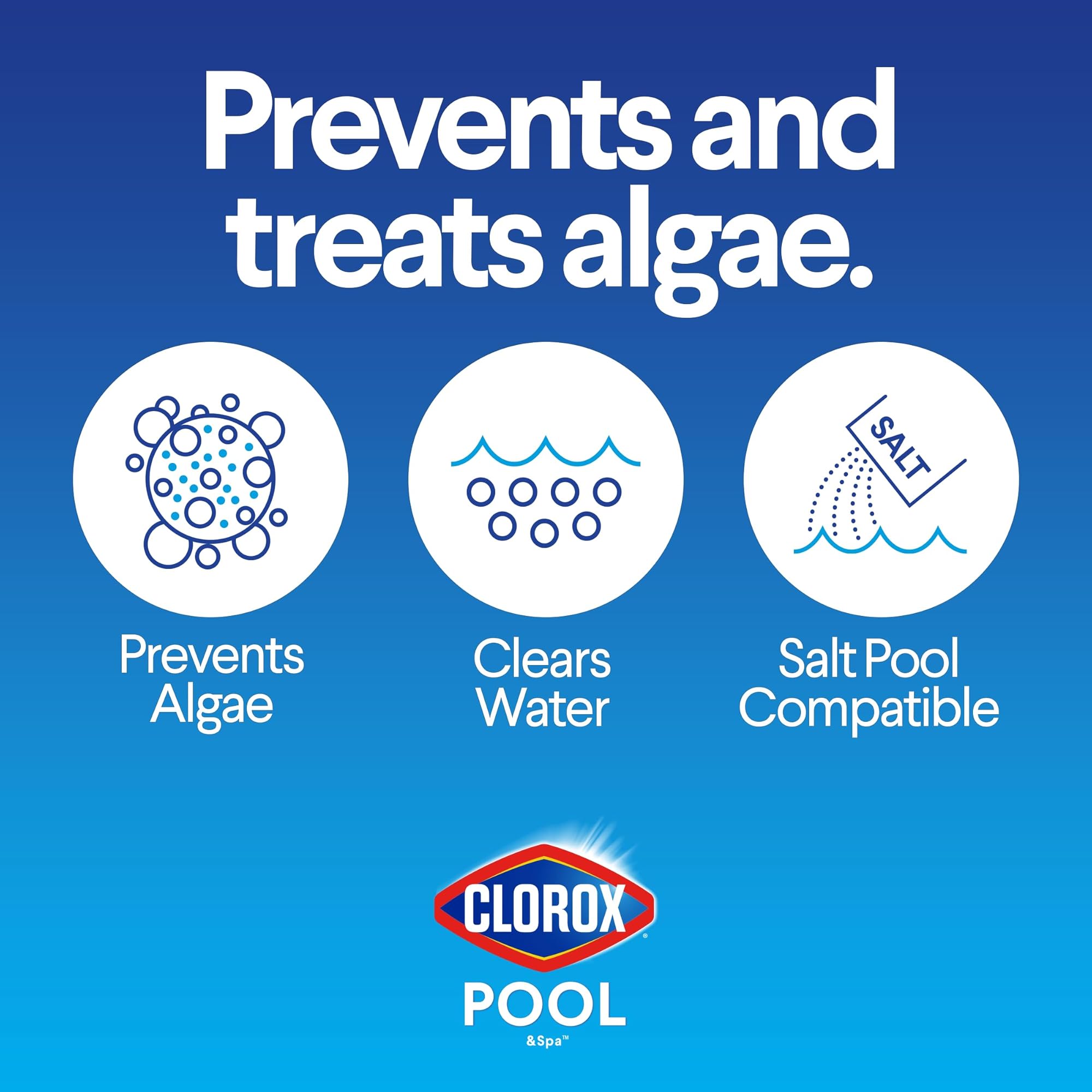 Clorox® Pool&Spa™ קוטל אצות ומטהר לבריכה, מונע ומטפל באצות בריכה, מנקה מים, 128 אונקיות נוזל (חבילה של 1)