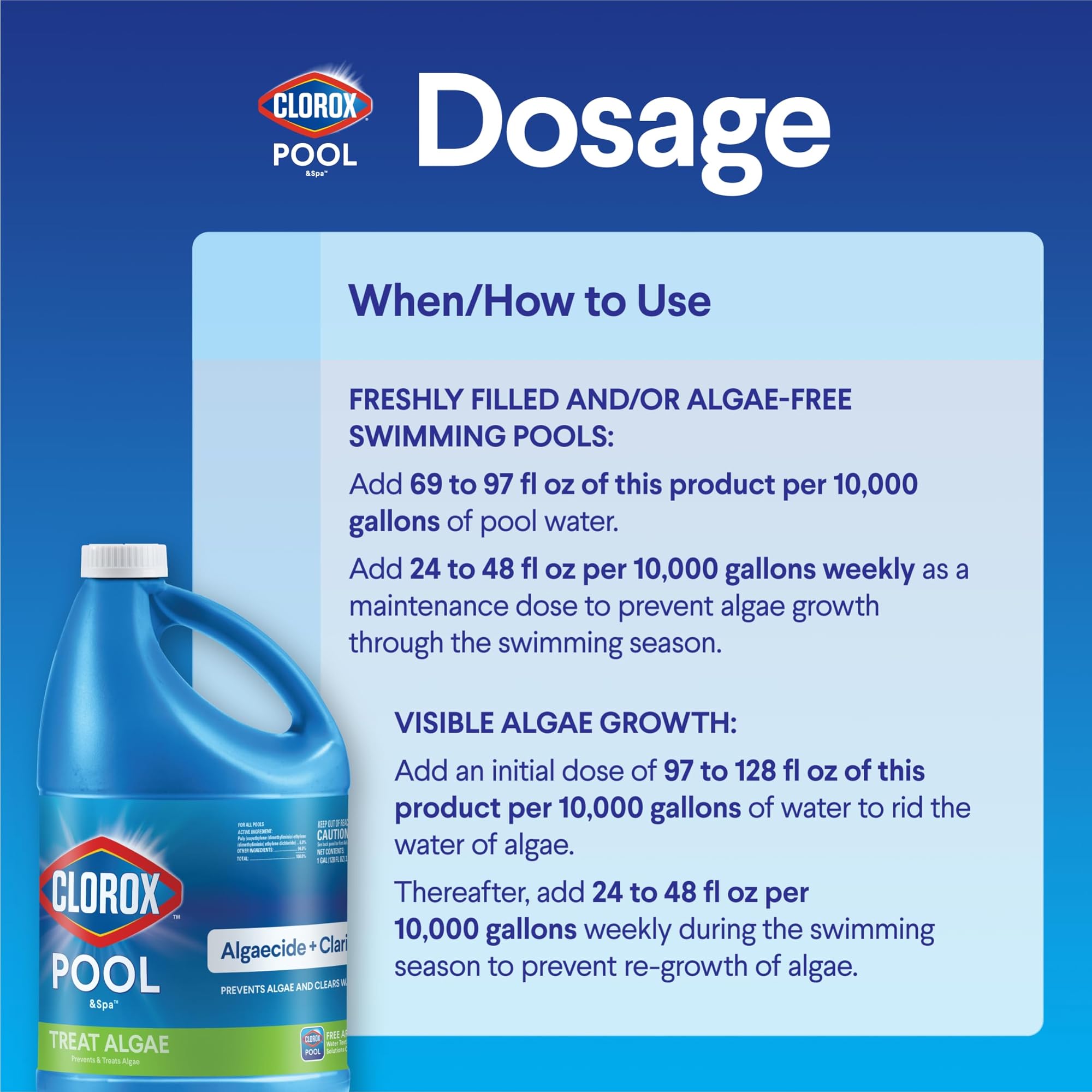 קוטל אצות ומטהר בריכות שחייה Clorox Pool&Spa, מונע ומטפל באצות בריכה, מנקה מים, 128 אונקיות נוזל (חבילה של 1);43128CLX.