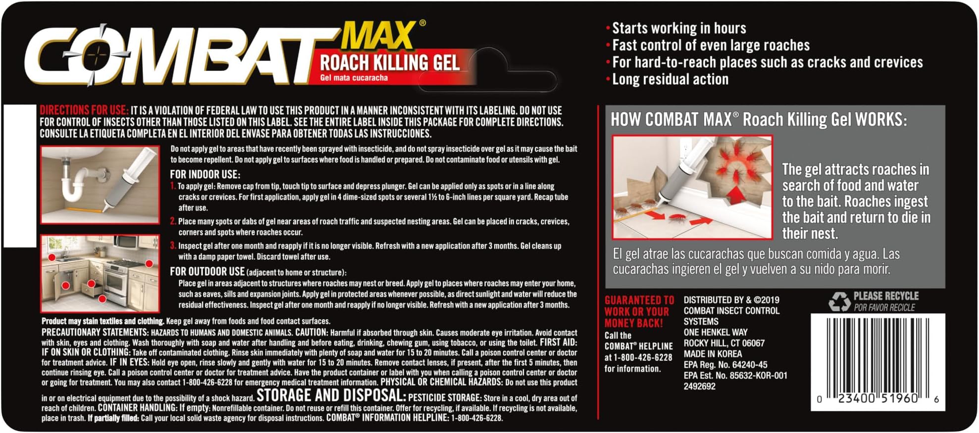 - חבילה זו כוללת מזרק אחד בנפח 2.1 אונקיות של ג'ל להרג ג'וקים Combat Max.