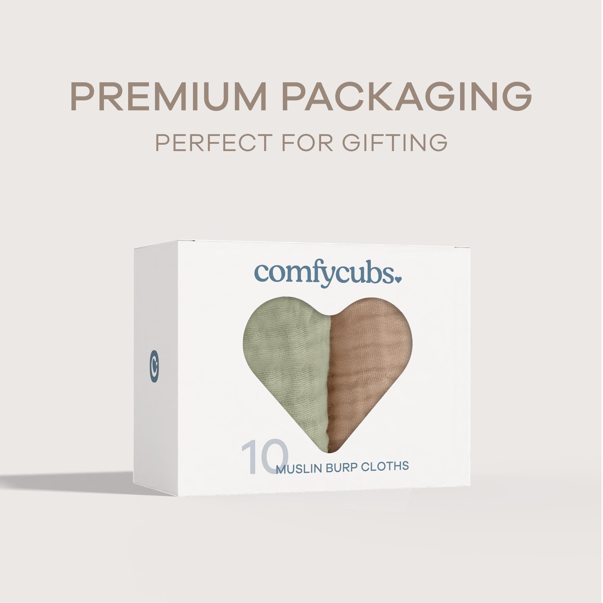מטליות גיהוק מוסלין של Comfy Cubs, 20 אינץ' x 10 אינץ', חבילה של 10 - גדולות, 6 שכבות, סופגות במיוחד 100% כותנה, להזרמת ריור ולכלוך של תינוקות - מטליות גיהוק רכות, בטוחות ועדינות לתינוקות לבנים ולבנות - רב תכליתי