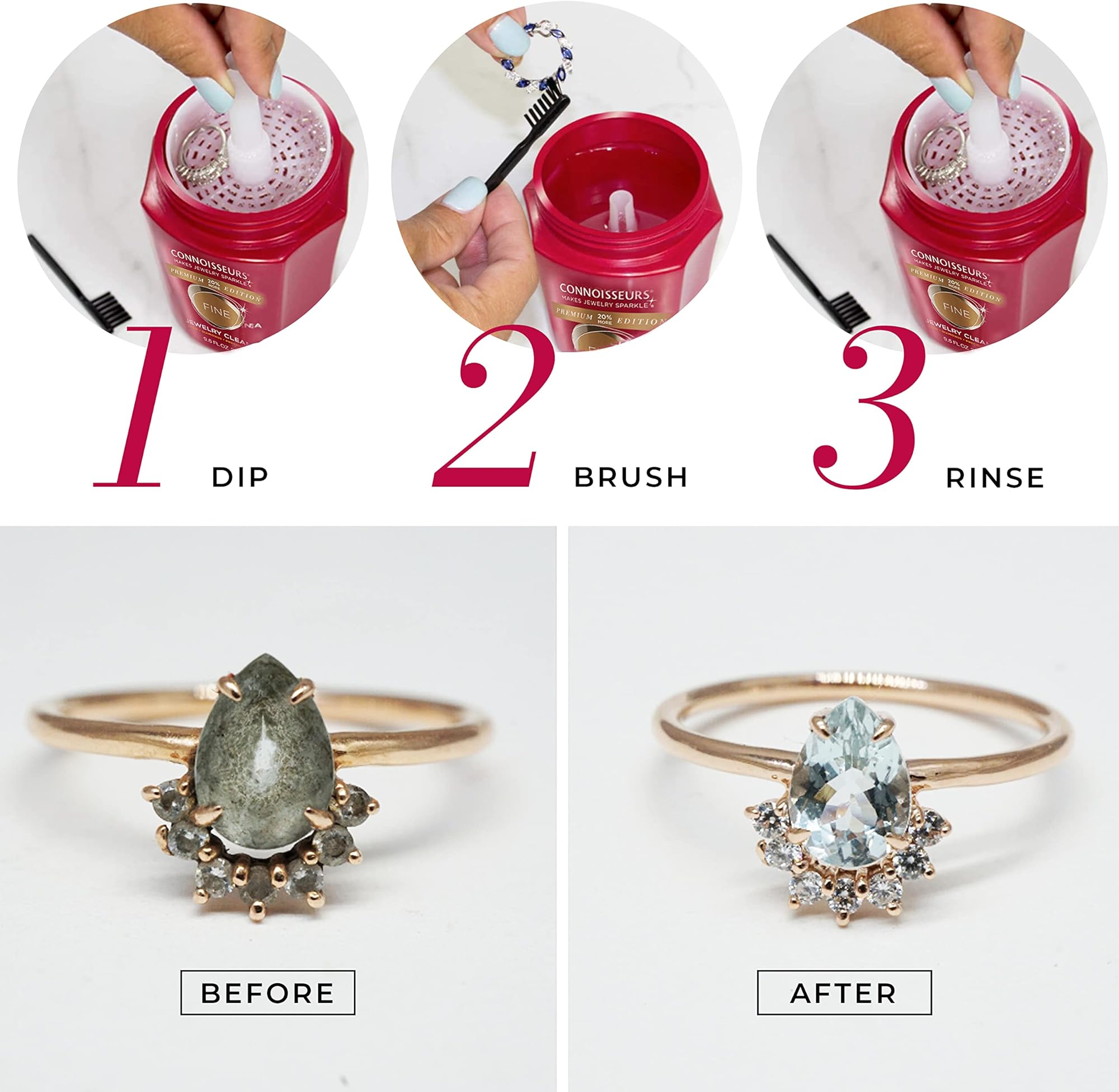תמיסת ניקוי תכשיטים איכותיים של Connoisseurs Premium Edition לזהב, יהלומים, פלטינה ואבני חן - 9.6 אונקיות נוזל - משיבה את הברק תוך שניות
