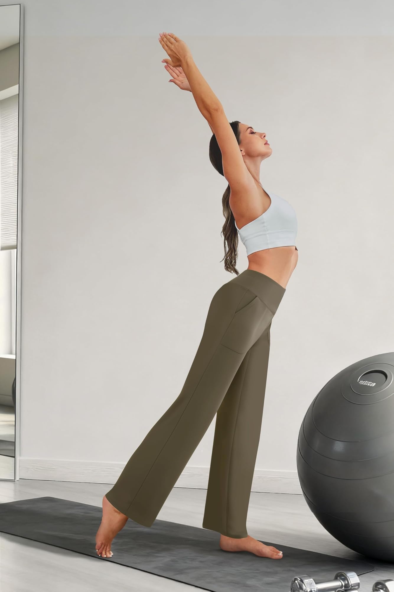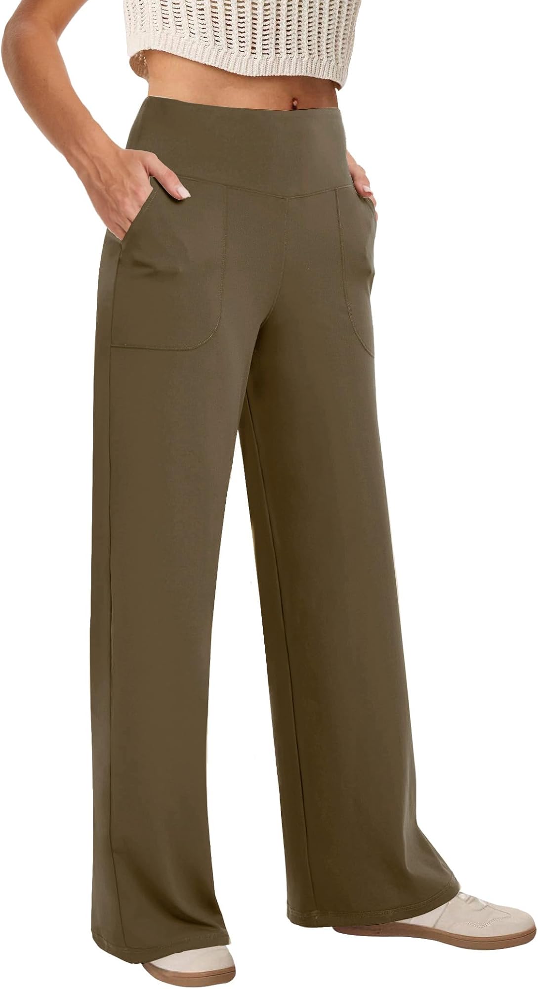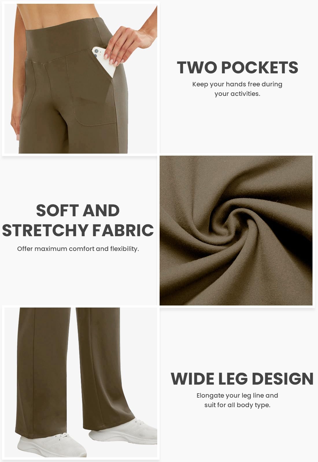 COPYLEAF מכנסי יוגה רחבים לנשים מכנסי יוגה גבוהים עם כיסים, נמתחים, רפויים, מכנסי טרנינג, עבודה, קז'ואל, טרקלין (קפה XL)