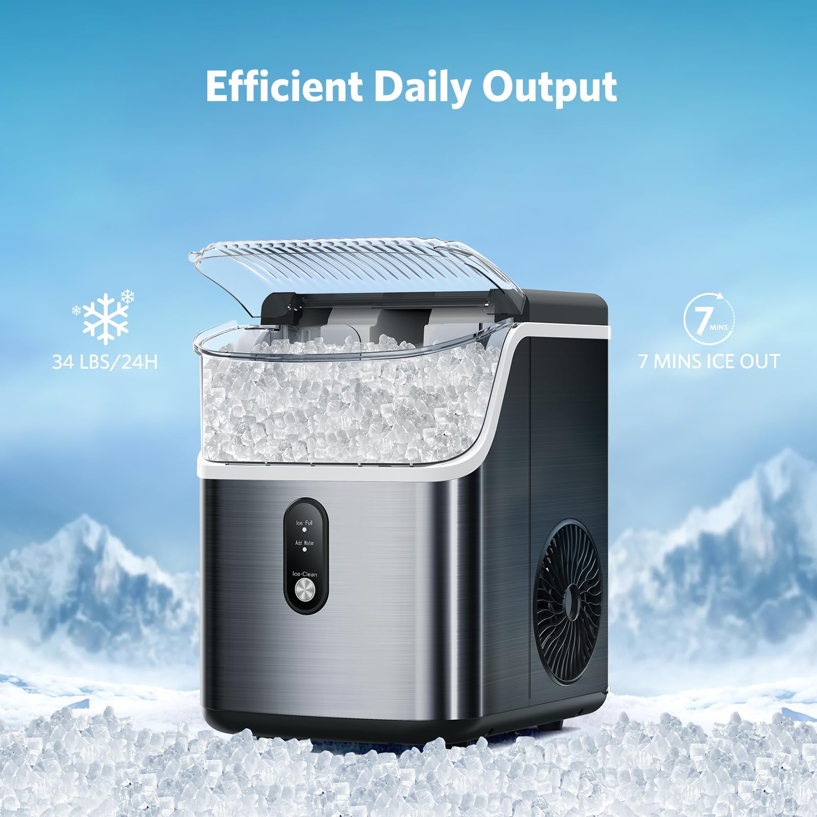 - 【רעש נמוך】המדחס של מכונת הקרח המשודרגת נאגט מפחית את הרעש, ומפיק רק 43 דציבלים, כך שלא תצטרכו להיתקל ברעש כשהמכונה פועלת.