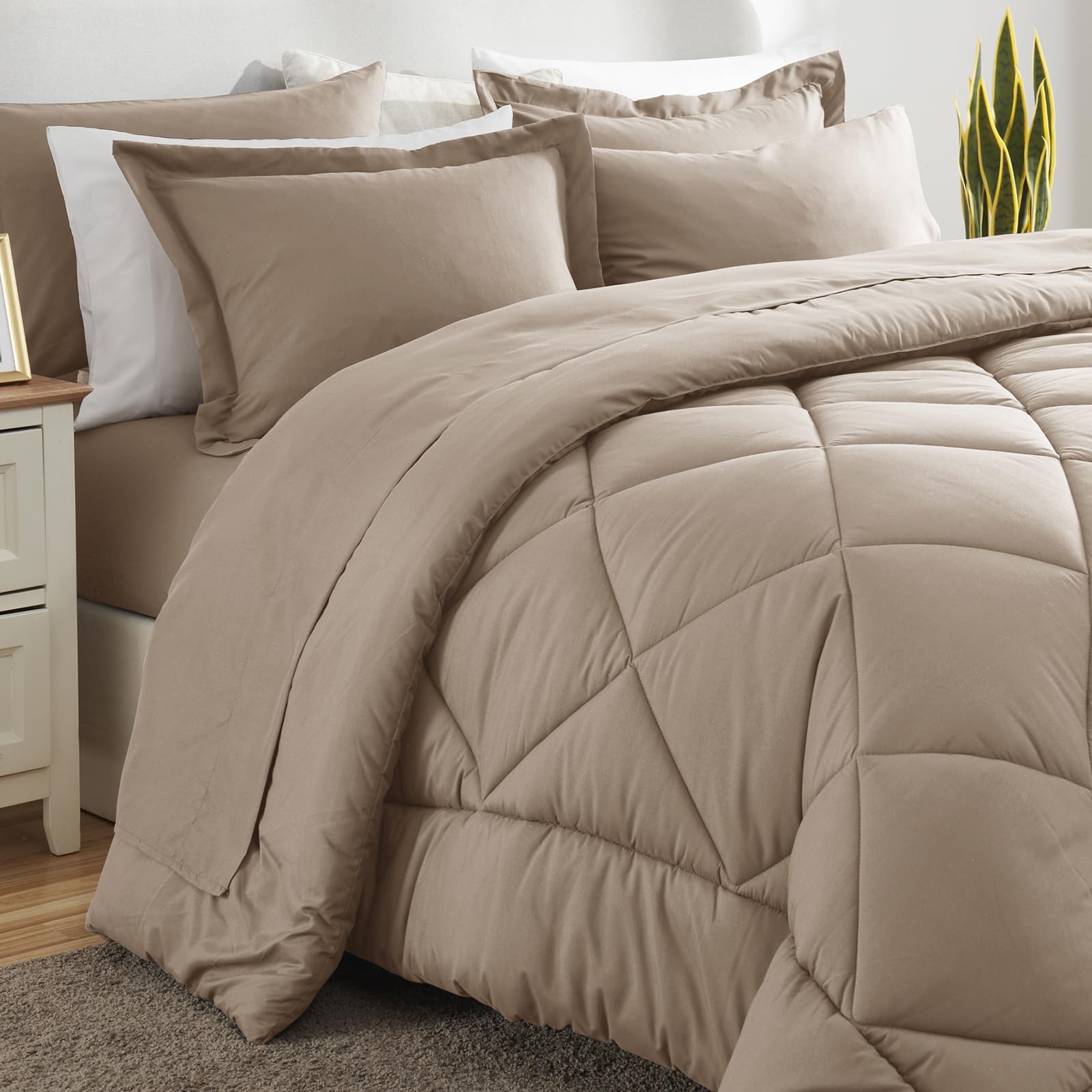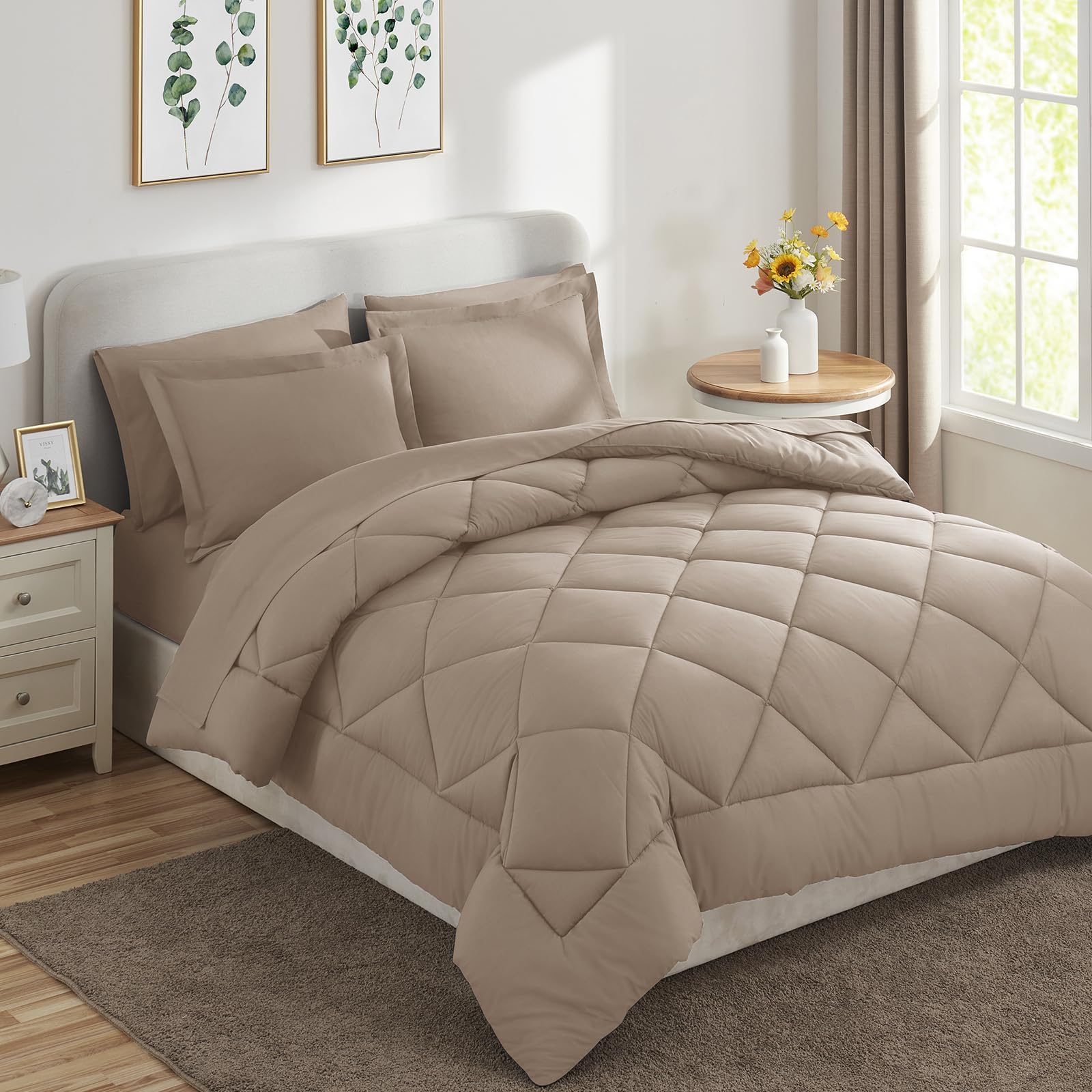 סט מצעים CozyLux קווין חאקי - מיטה בשקית בגודל קווין 7 חלקים, סט מצעים רך יוקרתי לכל עונות השנה, סט מצעים עם שמיכת פוך חלופית, סדינים, ציפיות וכריות
