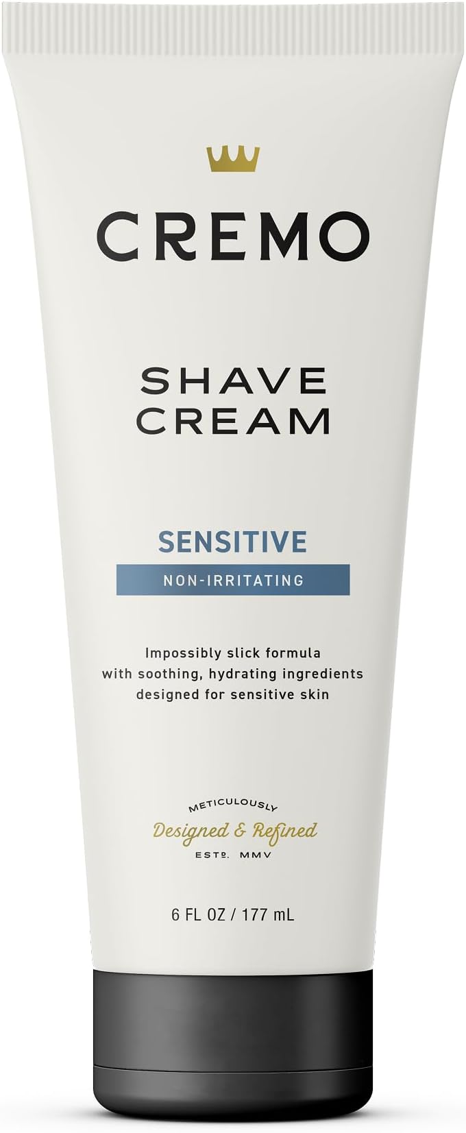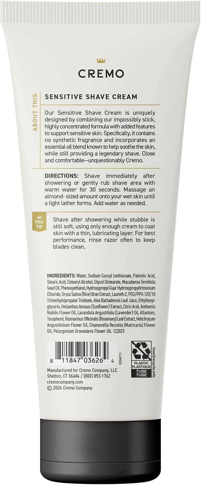 קרם גילוח Cremo Sensitive, קרם גילוח חלק במיוחד לגברים, נלחם בחתכים, פצעי גילוח וכוויות גילוח, 177 מ"ל