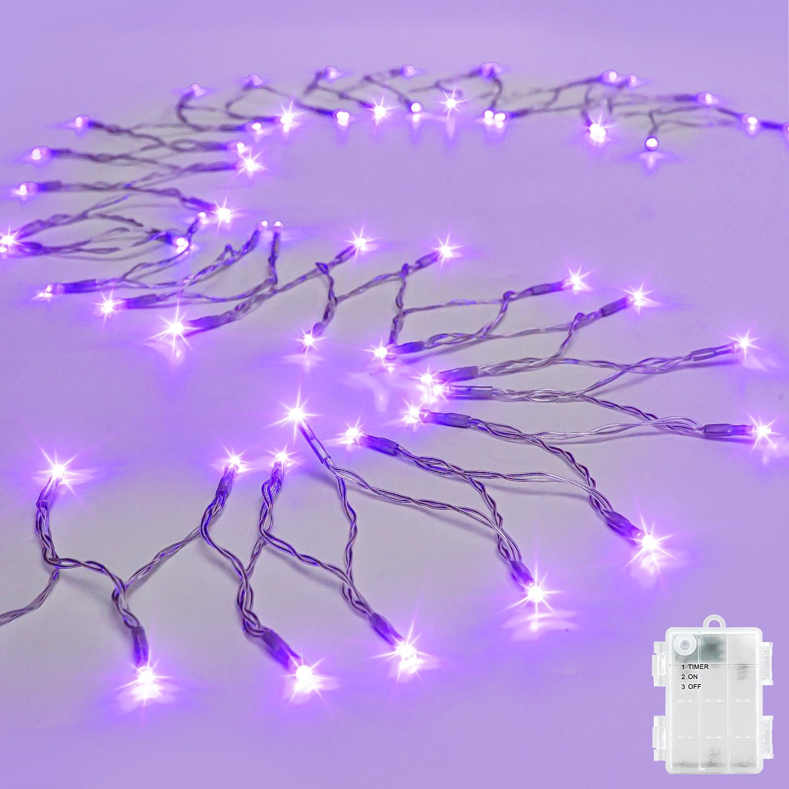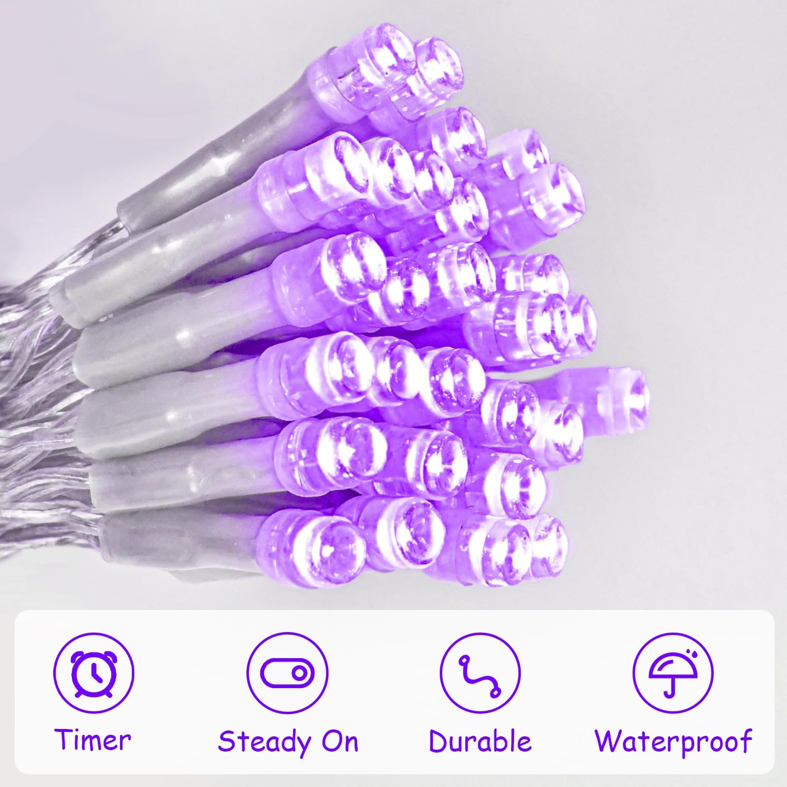 cshare מחרוזת אורות חיצונית עמידה למים 9.8 רגל 30 נורות LED, סגולות מופעלות על סוללה עם טיימר חוט שקוף לקישוטי חג המולד ליל כל הקדושים, זר מסיבה, גינה