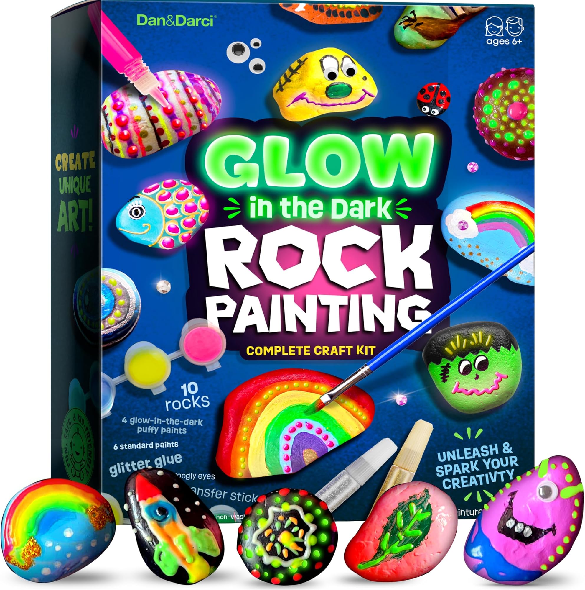 ערכת ציור אבנים לילדים של דן אנד דארסי - זוהר בחושך - מתנות לחג המולד, יצירה ואומנות לבנים ולבנות בגילאי 6-12 - ערכות פעילויות יצירה - צעצועי אמנות יצירתיים לילדים בני 6, 7, 8, 9, 10, 11 ו-12