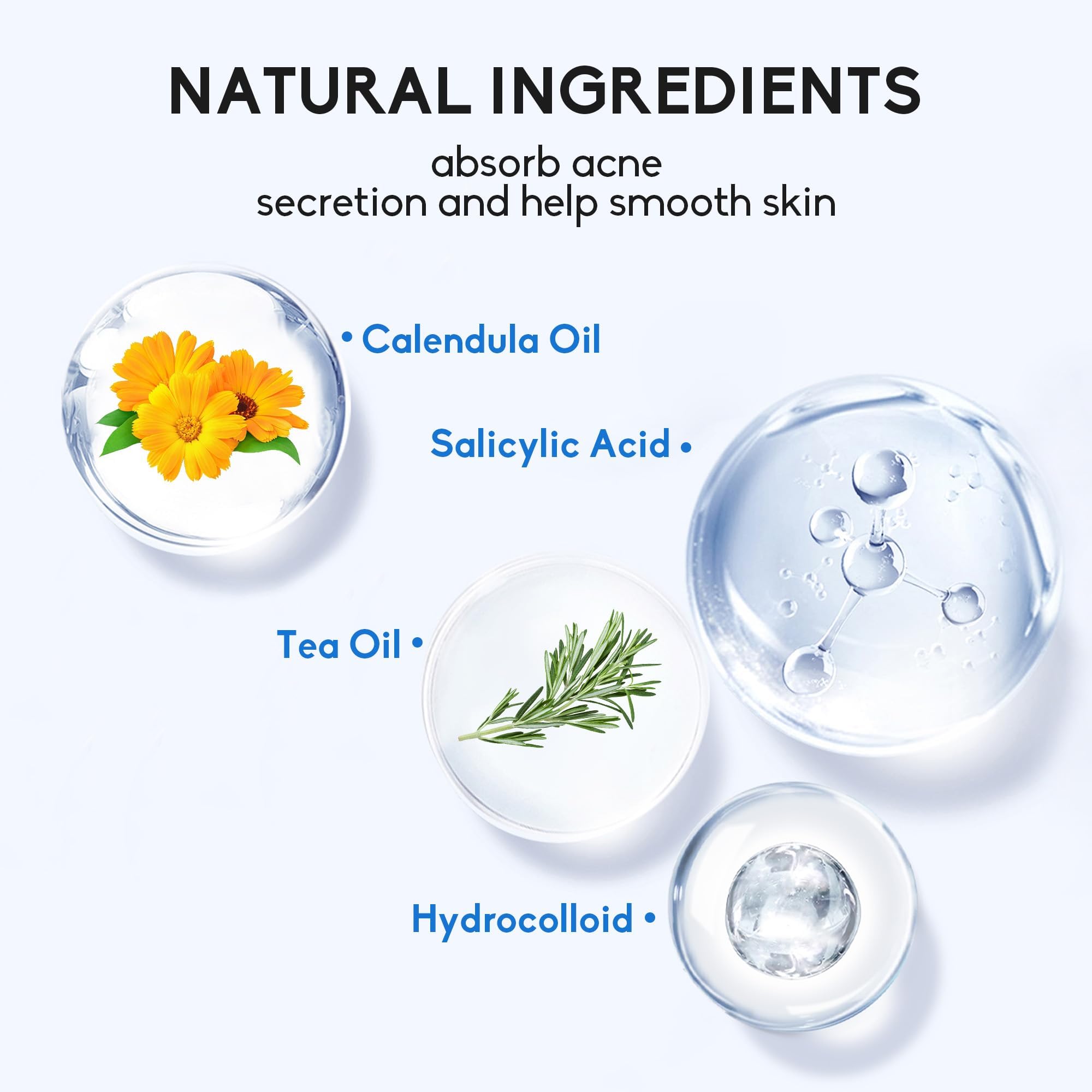 - רכיבים טבעיים: תחבושות ההידרוקולואיד שלנו מכילות רכיבים טבעיים כגון שמן עץ התה, חומצה סליצילית ושמן קלנדולה. מדבקות פצעונים אלו לפנים יעילות מאוד בספיגת לכלוך וכתמי פצעונים.