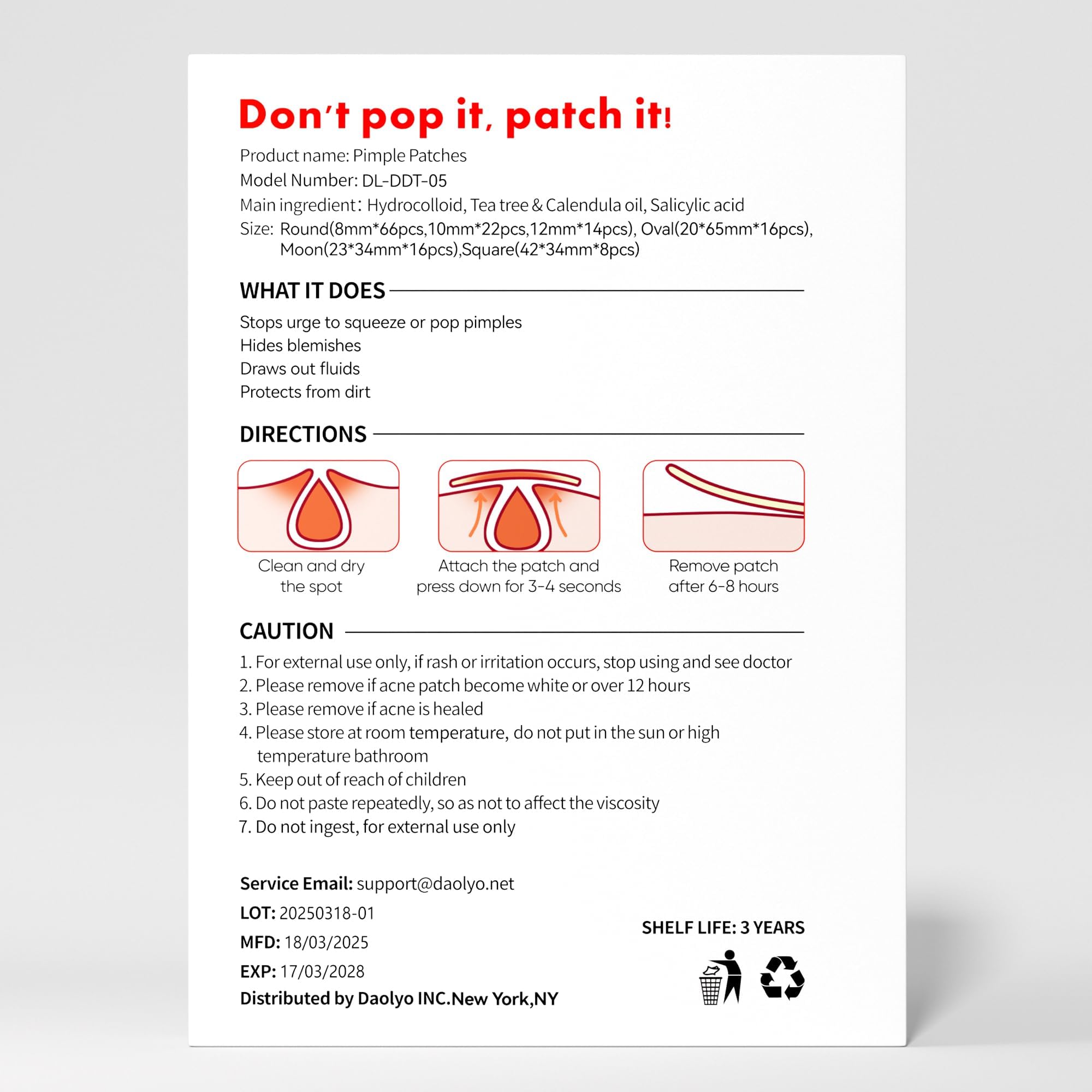 - קל לשימוש: יש לנקות ולייבש את האזור הפגוע, לאחר מכן לקלף ולהדביק את מדבקת הפצעון. יש להמתין 6-8 שעות לפני ההסרה. אם אינך מרוצה מהמוצר שלנו, אל תהסס לפנות אלינו בכל עת. אנו מציעים שירות 24 שעות ביממה.