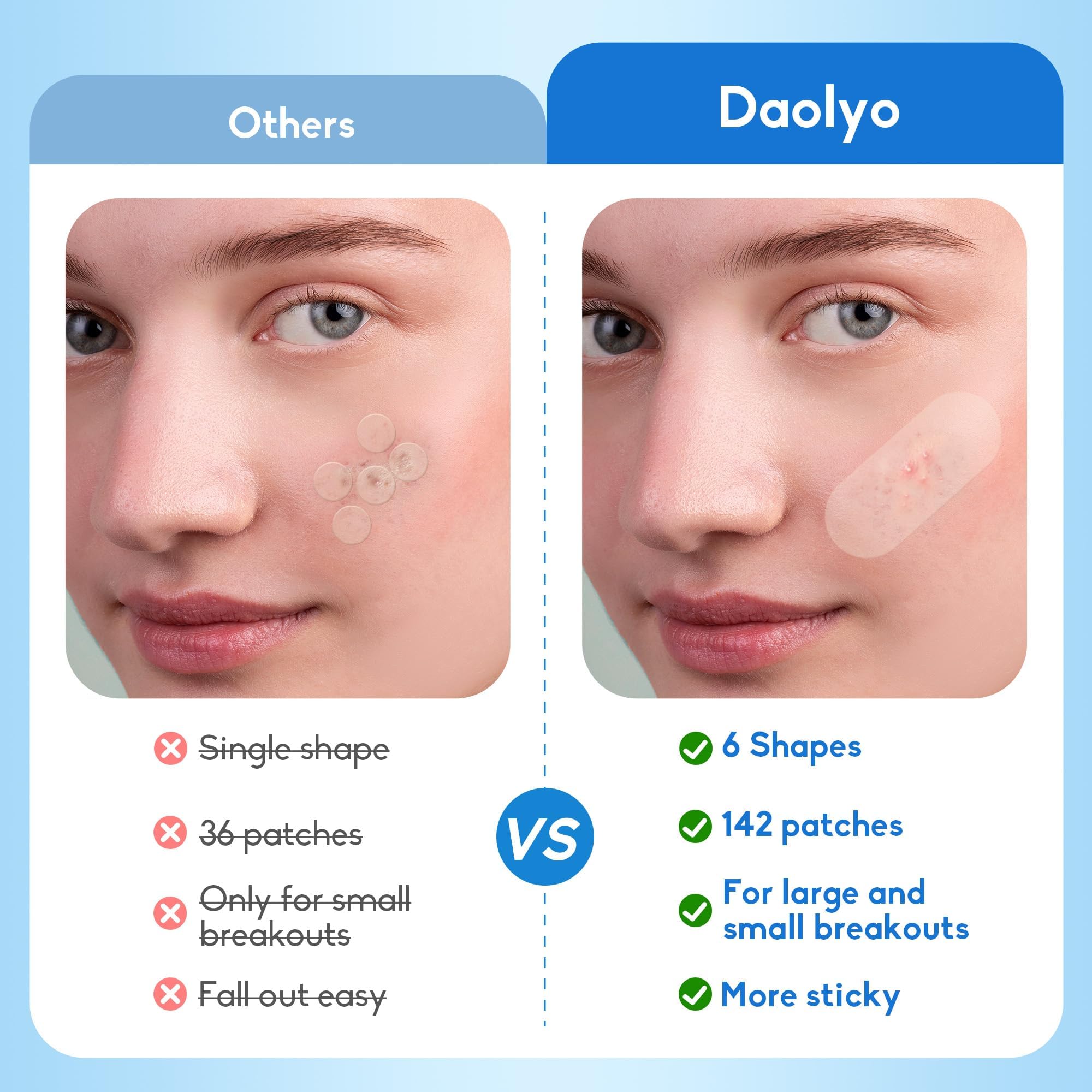 Daolyo מדבקות גדולות לאקנה פצעונים לפנים, 6 גדלים 142 תחבושות הידרוקולואידיות גדולות לגוף, מצח, סנטר, אף, צוואר וחזה (עגול, סגלגל, ירח, מרובע)