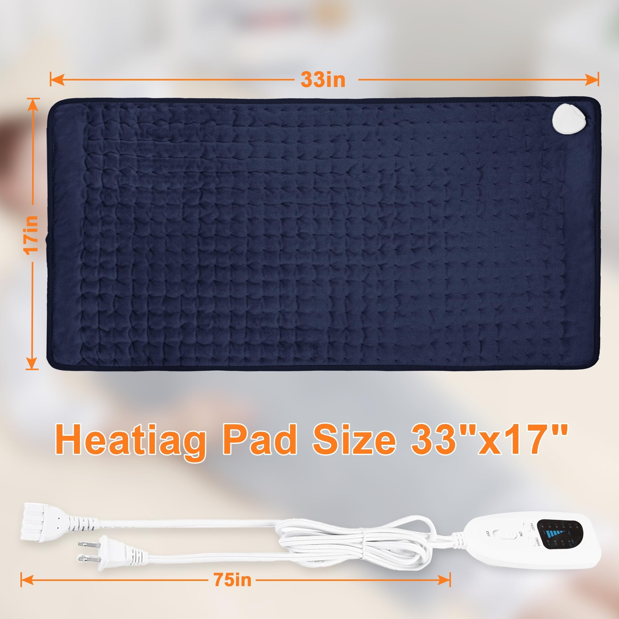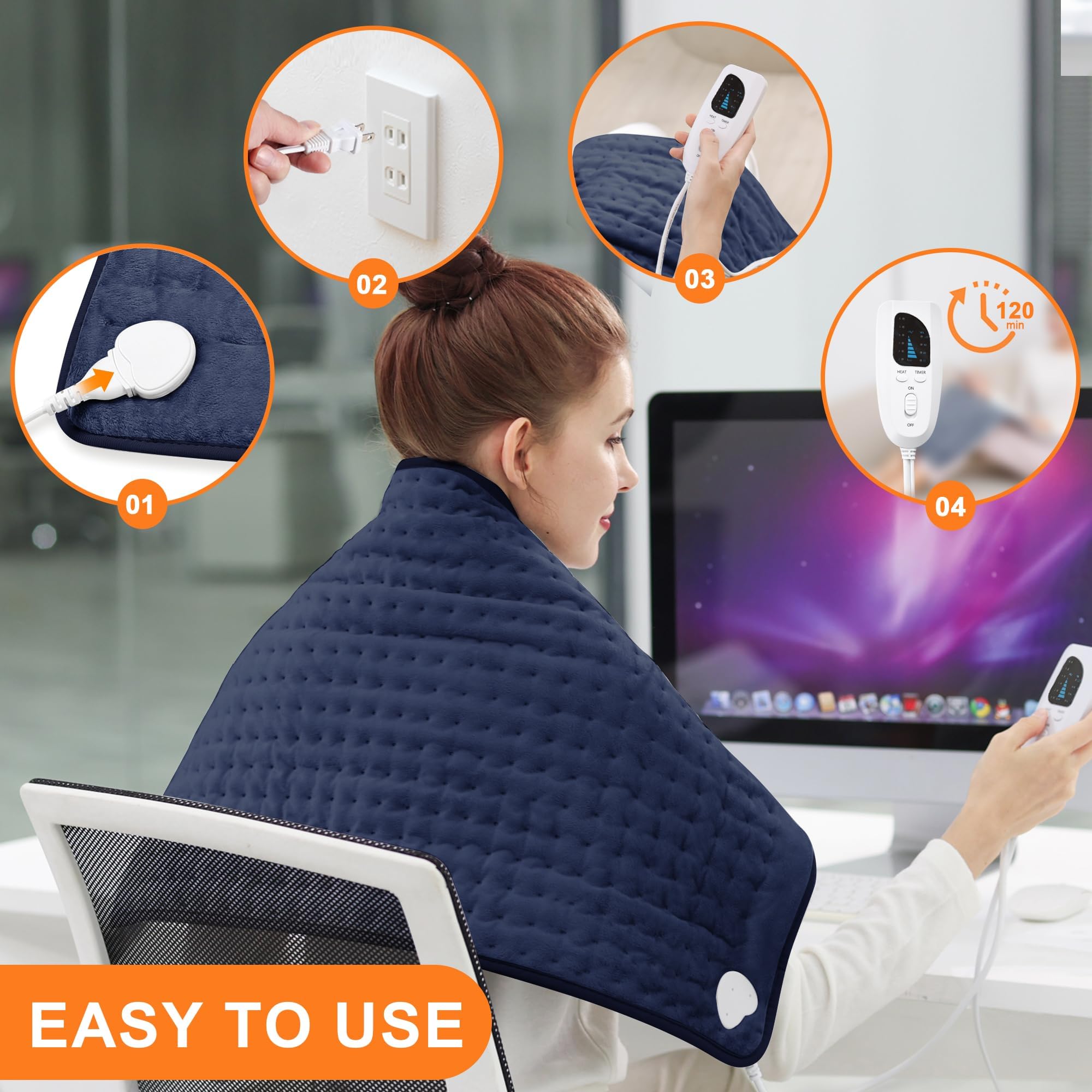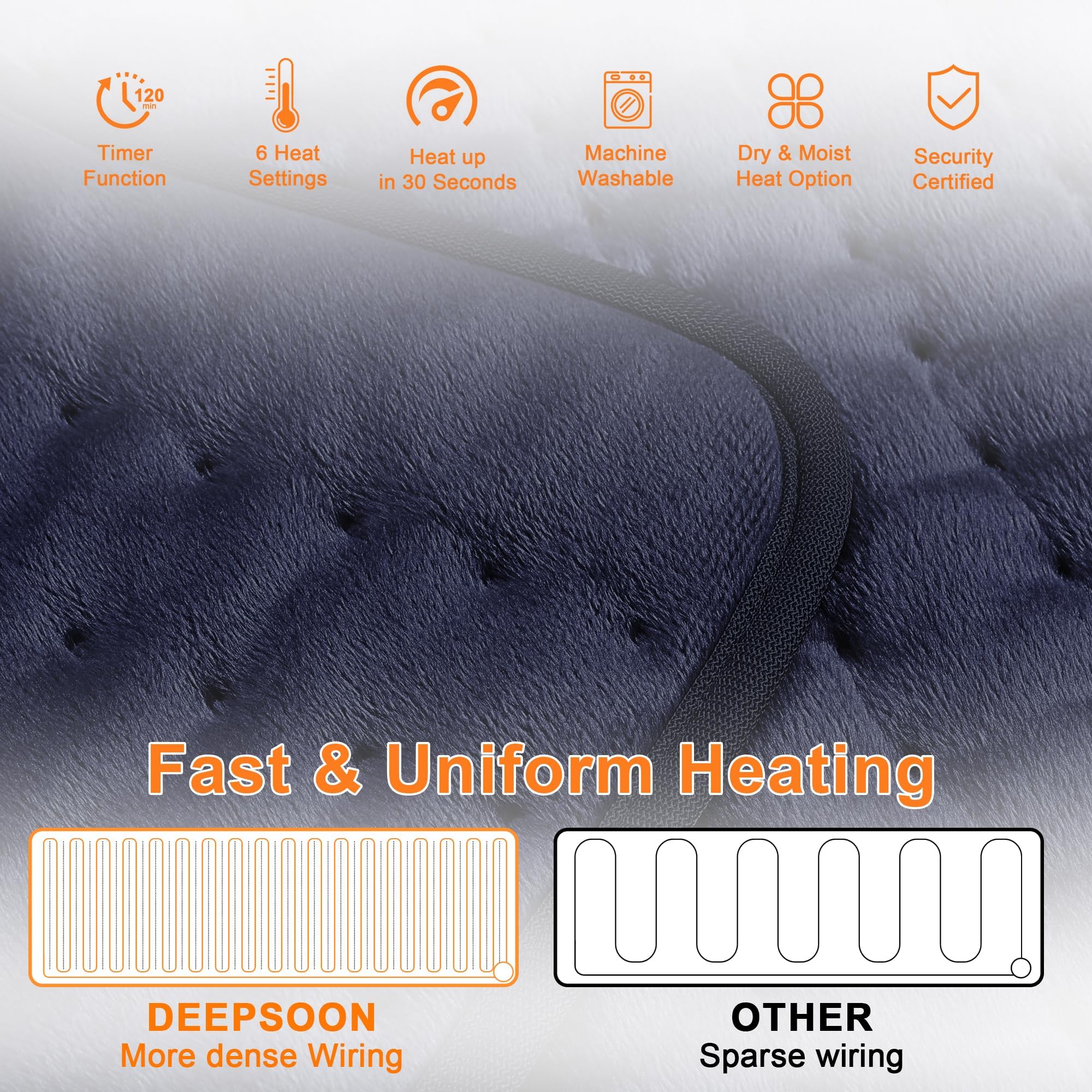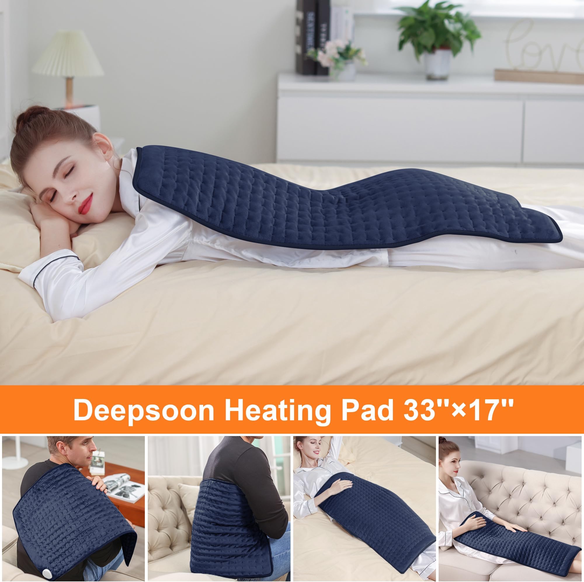 כרית חימום Deepsoon, רפידות חימום חשמליות לגב, צוואר, בטן, כרית חימום לחה לכתף, ברכיים, זרועות, רגליים, חום יבש/לח וכיבוי אוטומטי, מתנות יום הולדת לגברים ולנשים, כחול כהה, 33x17 אינץ'
