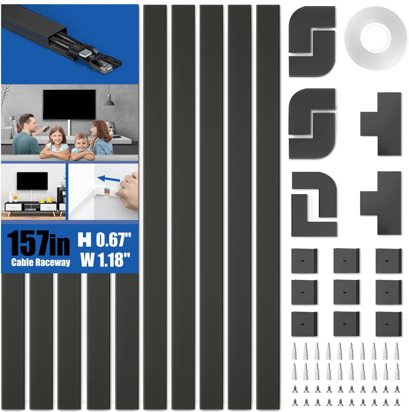 מסתיר כבלים Delamu 157 אינץ', כיסוי כבלים לקיר ניהול כבלים, כיסוי חוטים ניתן לצביעה לכבלים, ערכת מסילת מסתיר כבלים, מסתיר כיסוי כבלים, מסתירי חוטים לטלוויזיה על קיר, 10 X אורך 15.7 רוחב 1.18 גובה 0.6 אינץ', שחור