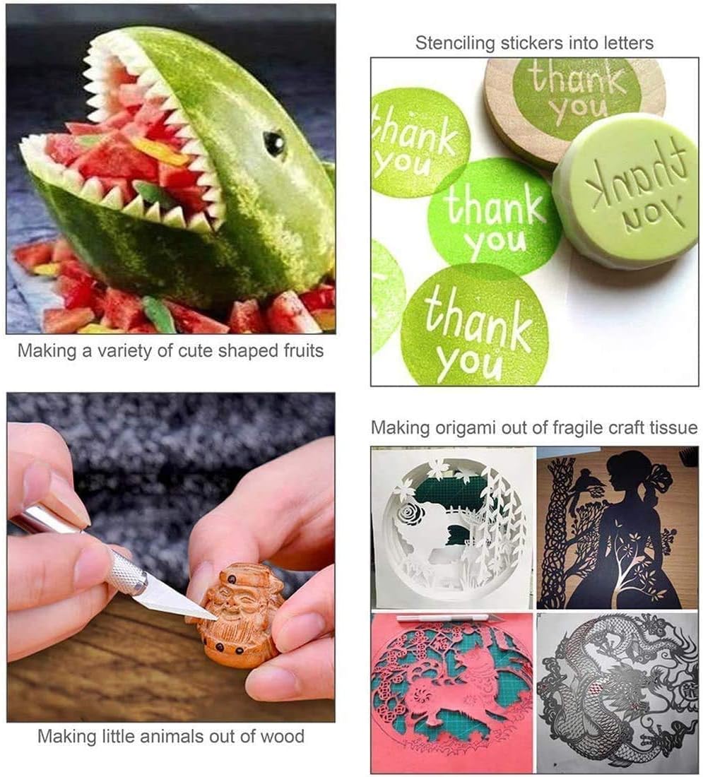 - סט סכינים מעולה: סכין אמנות בעלת ידית מתכת קלת משקל עם מרקם מפחית ביעילות את רמת עייפות היד ומציעה אחיזה יציבה יותר בעת השימוש.