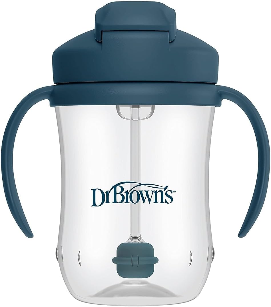 כוס אימון Milestones Baby's First Straw, כוס אימון עם קשית משקולות, 270 מ"ל, כחול כהה, ללא BPA, 6 חודשים ומעלה