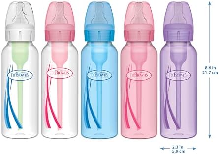 - בקבוקי תינוקות צרים של ד"ר בראון'ס Natural Flow Anti-Colic Options+ 8 oz/250 מ"ל, עם פטמה איטית ברמה 1, חבילה של 4, 0 מטר+