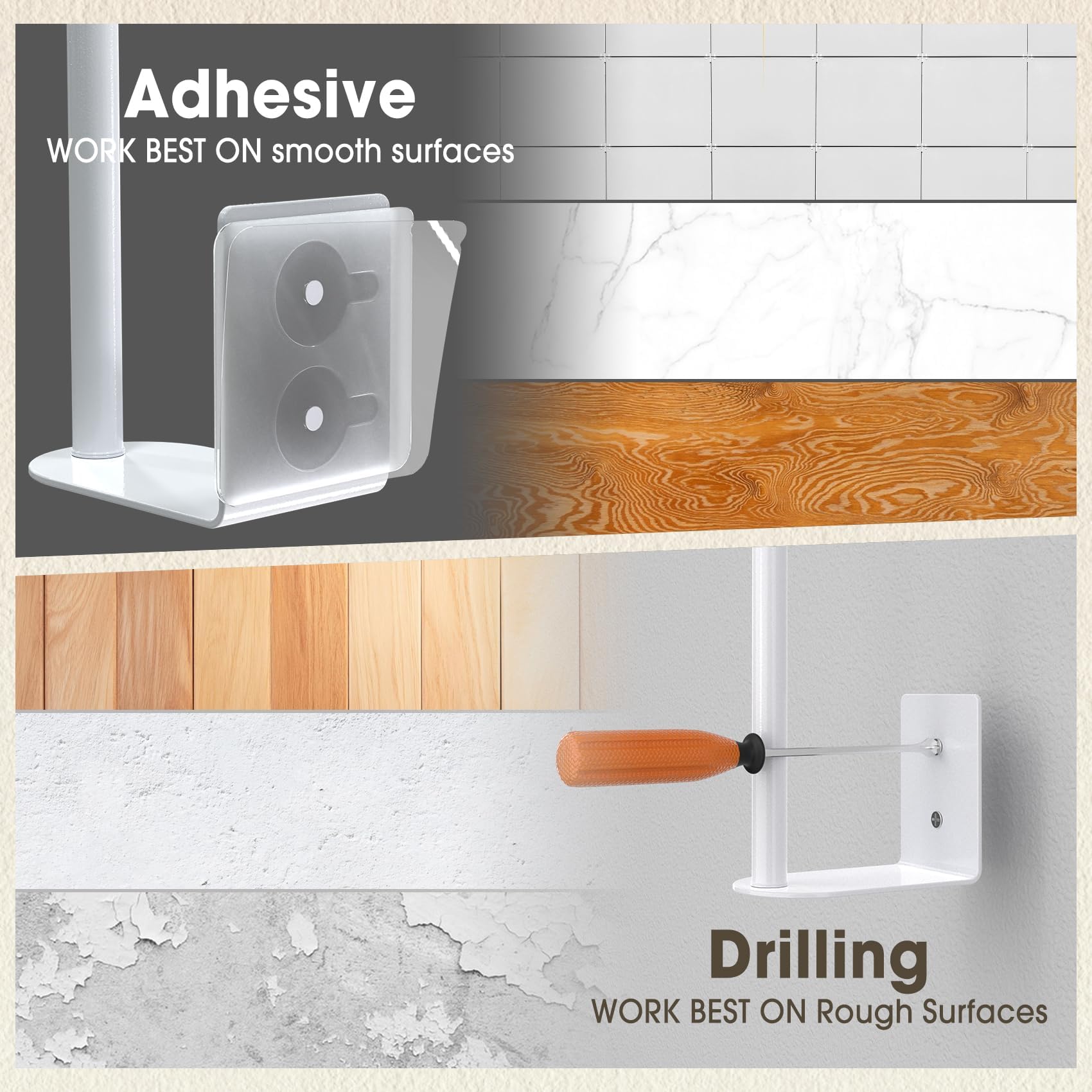 - 【שלוש שיטות התקנה】: 1. התקנה עצמית, מתאימה למשטחי קיר חלקים כגון אריחי שיש וזכוכית. 2. התקנה באמצעות קידוח, מתאימה למשטחים מחוספסים ולא אחידים כגון קיר גבס צבוע וטפטים. 3. התקנה באמצעות ברגים על לוח העץ.