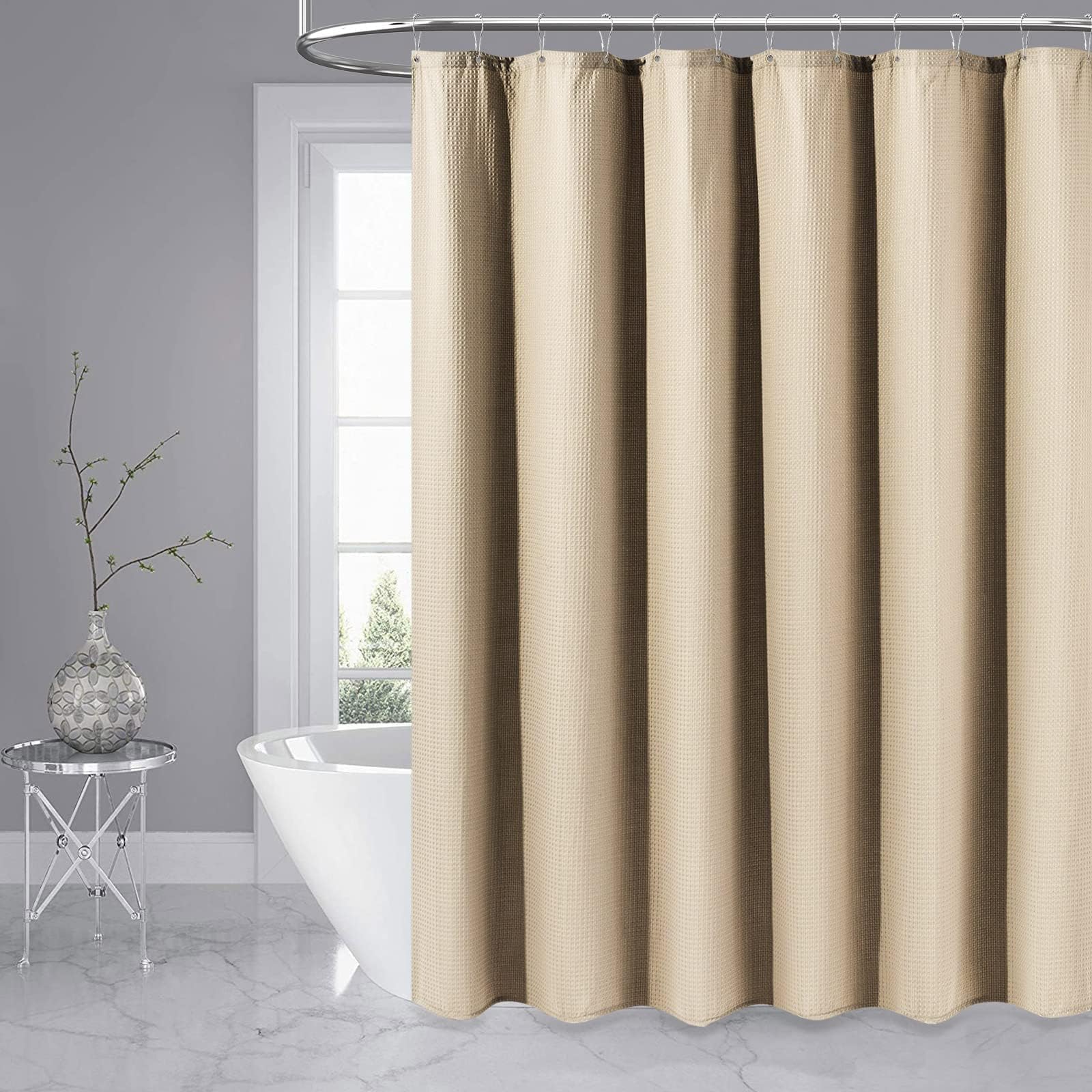 וילון מקלחת בד Dynamene Stall - וילונות מקלחת מבד משוקלל 36x72 בצבע וופל לחדר אמבטיה, סט וילונות אמבטיה יוקרתי ועמיד ניטרלי למלון ספא עם 6 ווים מפלסטיק, בז'/חאקי