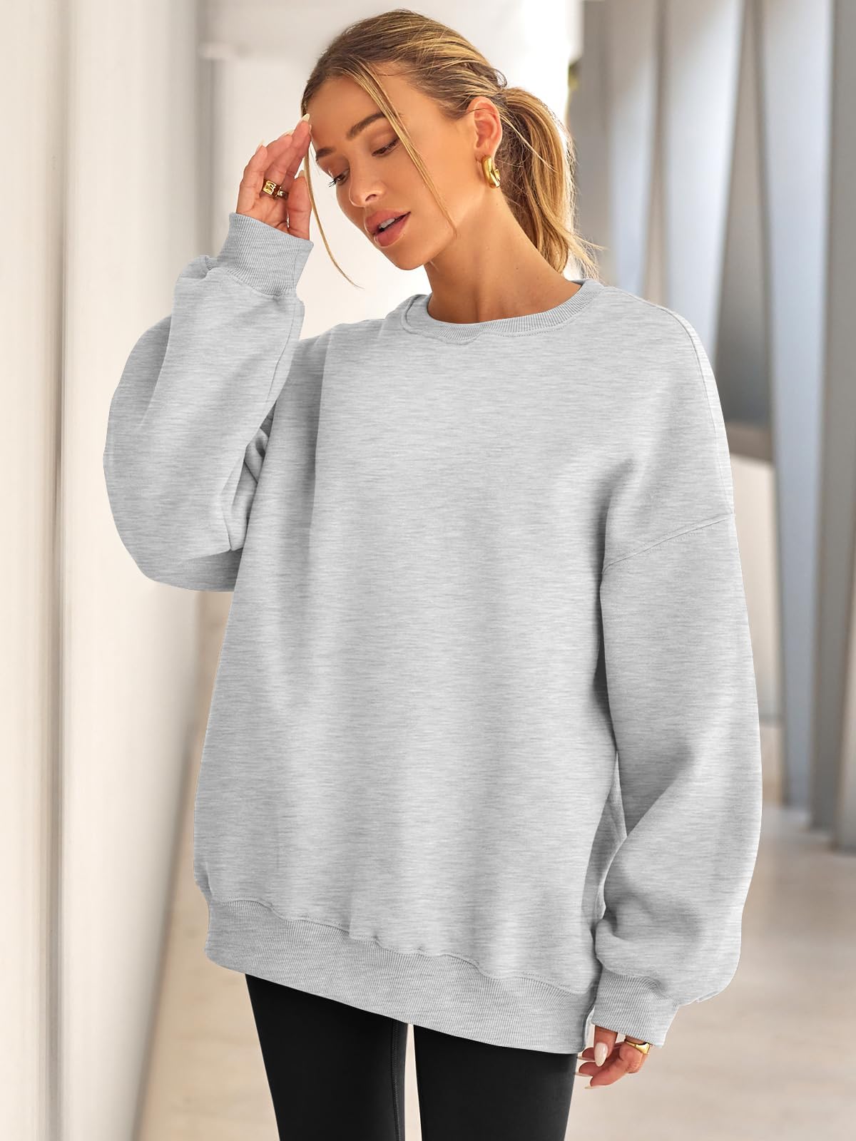 EFAN סווטשירטים לנשים קפוצ'ונים סוודרים גדולים צווארון עגול פליז חולצות קז'ואל בסיסי נוח אופנתי סתיו 2025 מידות גדולות הריון אימונים טרקלין תלבושות חורף אפור XL