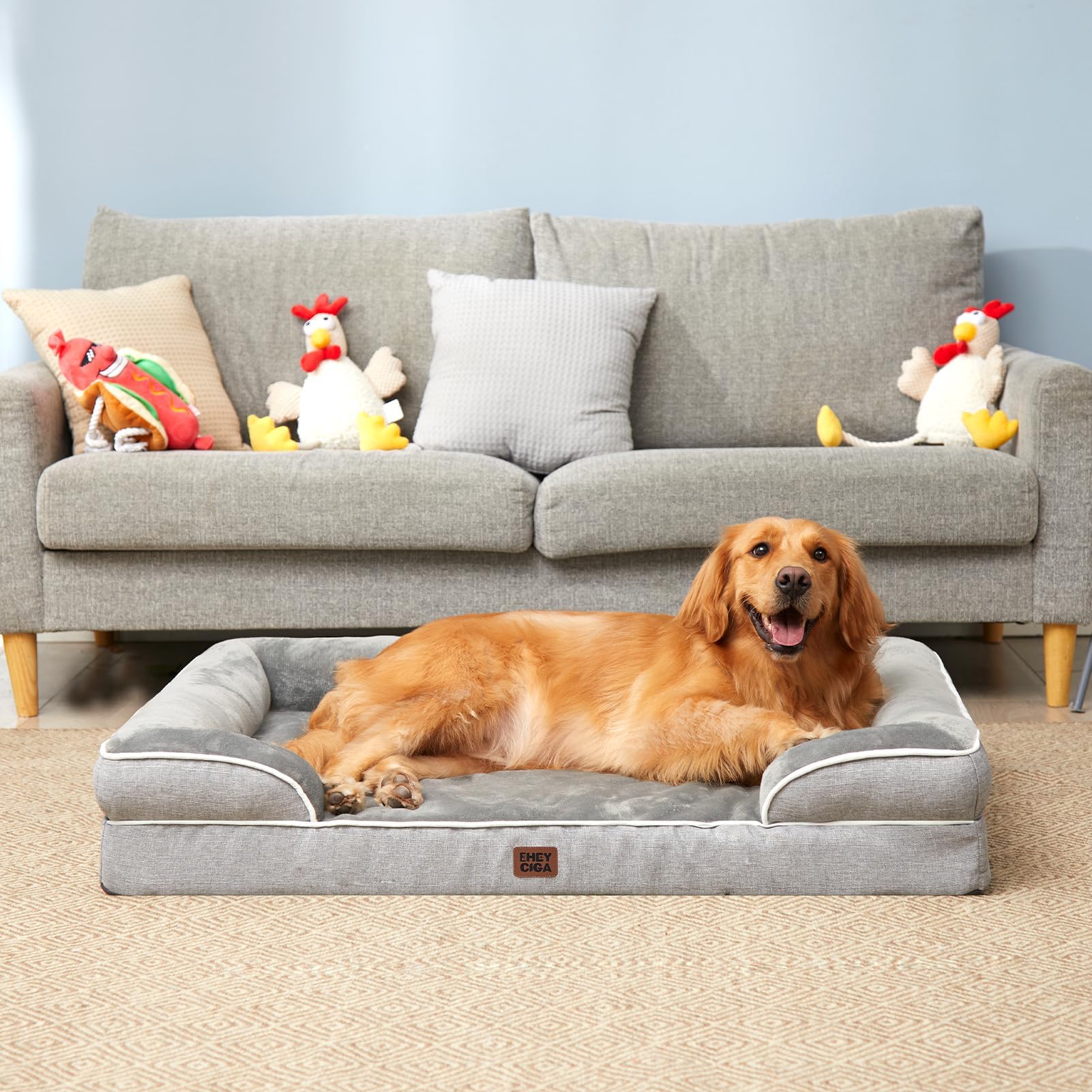 EHEYCIGA מיטות אורטופדיות לכלבים גדולים במיוחד 44x32 אינץ', מיטת חיות מחמד עמידה למים מקצף זיכרון XL עם צדדים, מיטת ספה גדולה לכלבים גדולים מקצף עם כיסוי נשלף רחיץ, אפור