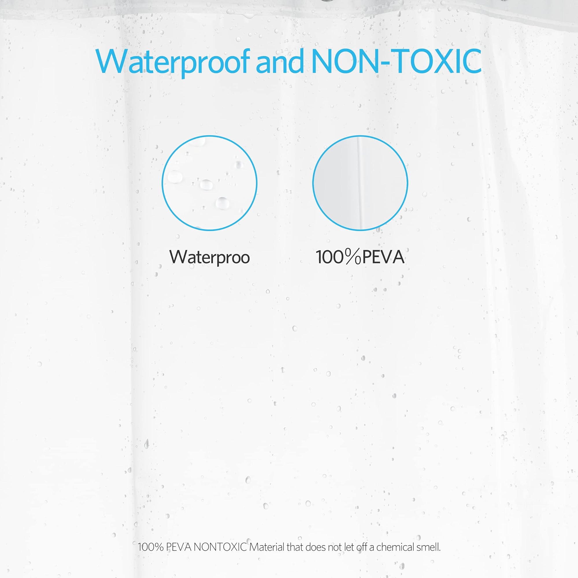 - ריפוד וילון מקלחת PEVA אמין: וילון המקלחת EHZNZIE עשוי מחומר PEVA שנבדק ביסודיות, המיוצר לעמוד בסביבות אמבטיה. חומר PEVA 100% שאינו מדיף ריח כימי. ללא PVC. PEVA שאינו חושף את המשפחה והסביבה לאדים כימיים מזיקים. וילון המקלחת לא יפלוט את הכימיקלים המזיקים שמגיעים לעתים קרובות עם וילונות ויניל או פלסטיק.