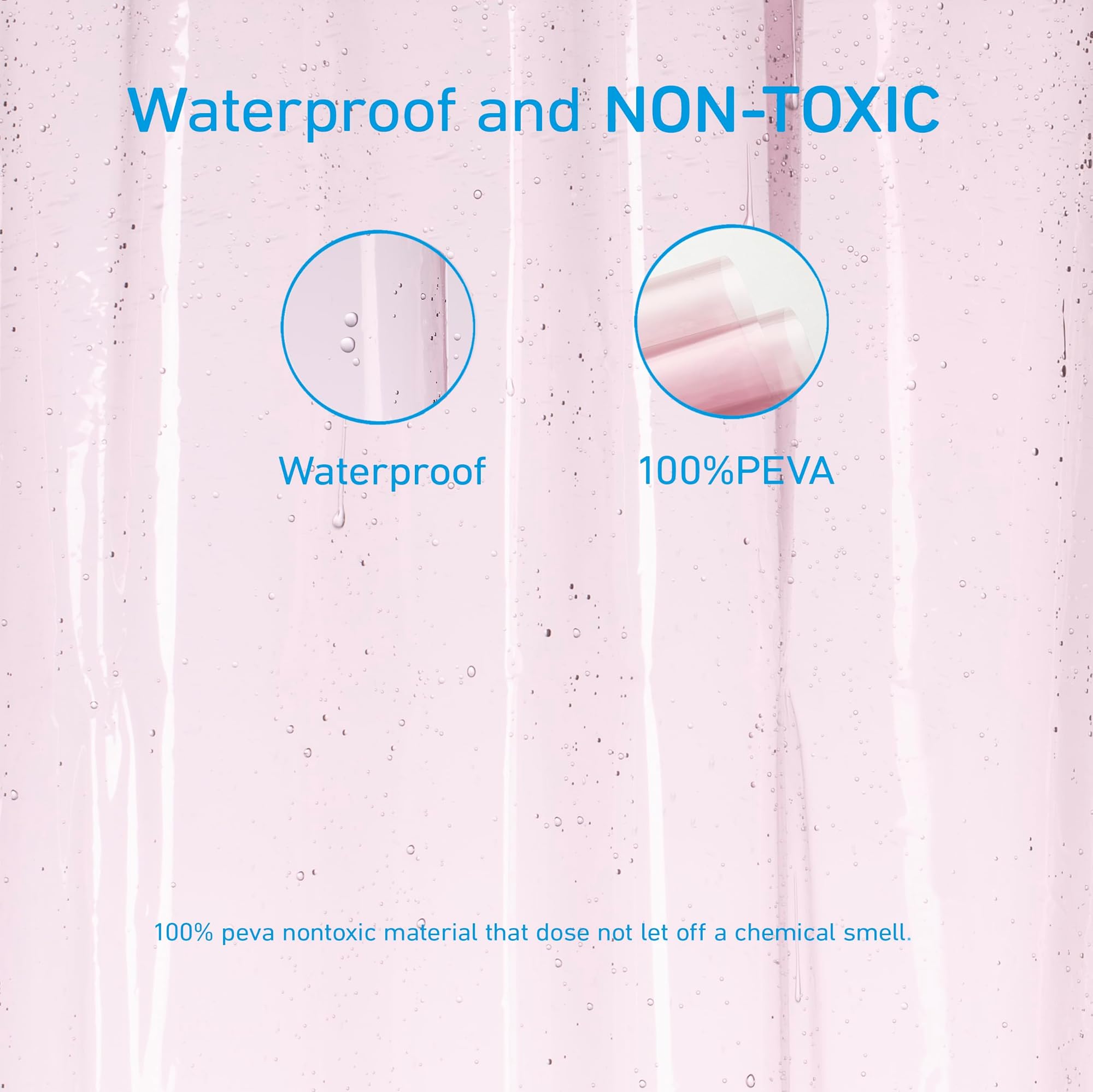 - ריפוד וילון מקלחת PEVA אמין: וילון המקלחת EHZNZIE עשוי מחומר PEVA שנבדק ביסודיות, המיוצר לעמוד בסביבות אמבטיה. חומר PEVA 100% שאינו מדיף ריח כימי. ללא PVC. PEVA שאינו חושף את המשפחה והסביבה לאדים כימיים מזיקים. וילון המקלחת לא יפלוט את הכימיקלים המזיקים שמגיעים לעתים קרובות עם וילונות ויניל או פלסטיק.