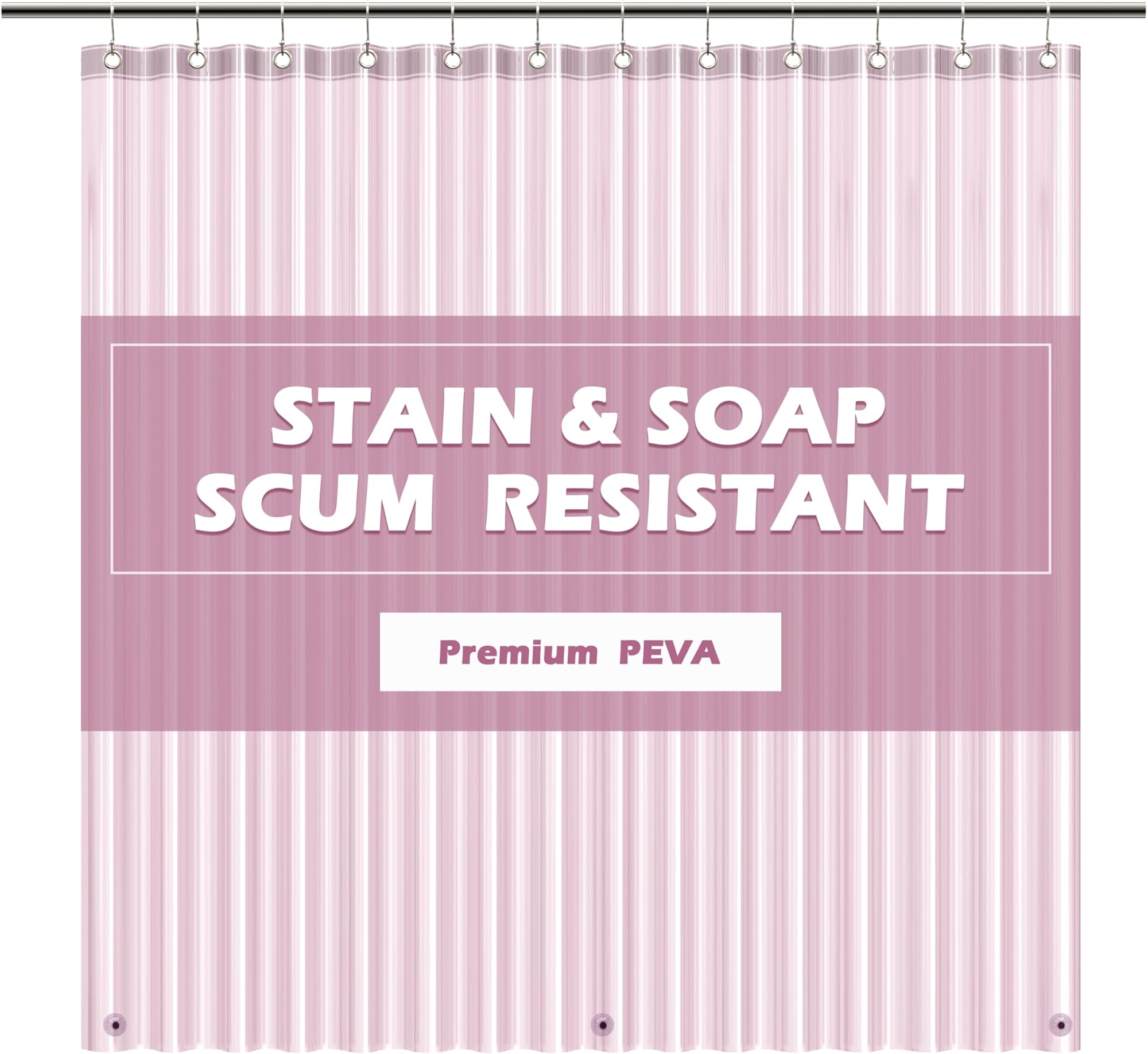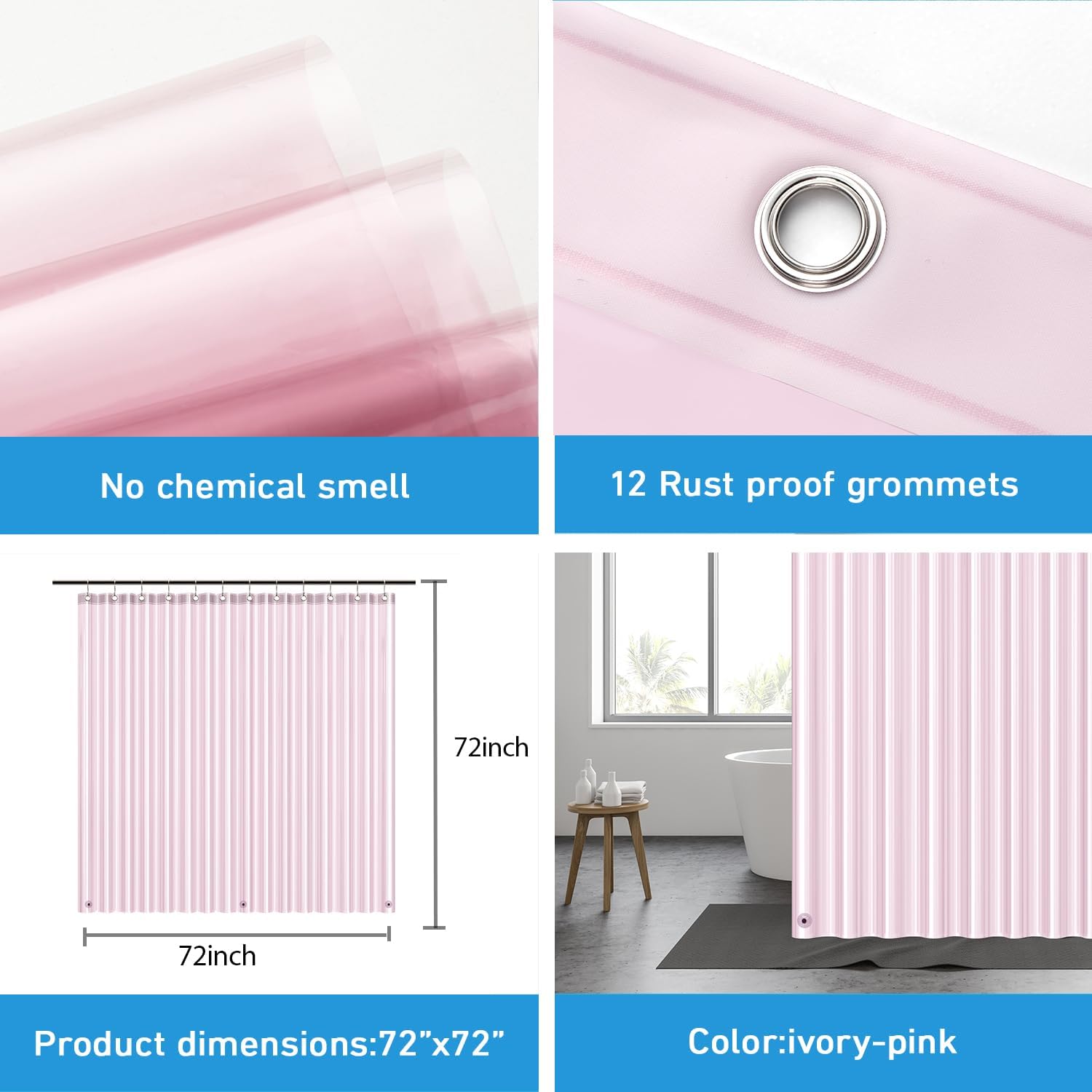 EHZNZIE וילון מקלחת קל משקל PEVA, בטנת מקלחת 72x72 אינץ', עמידה למים, ללא ריח כימי עם 12 לולאות מתכת עמידות בפני חלודה לוילון מקלחת חדר אמבטיה, ורוד