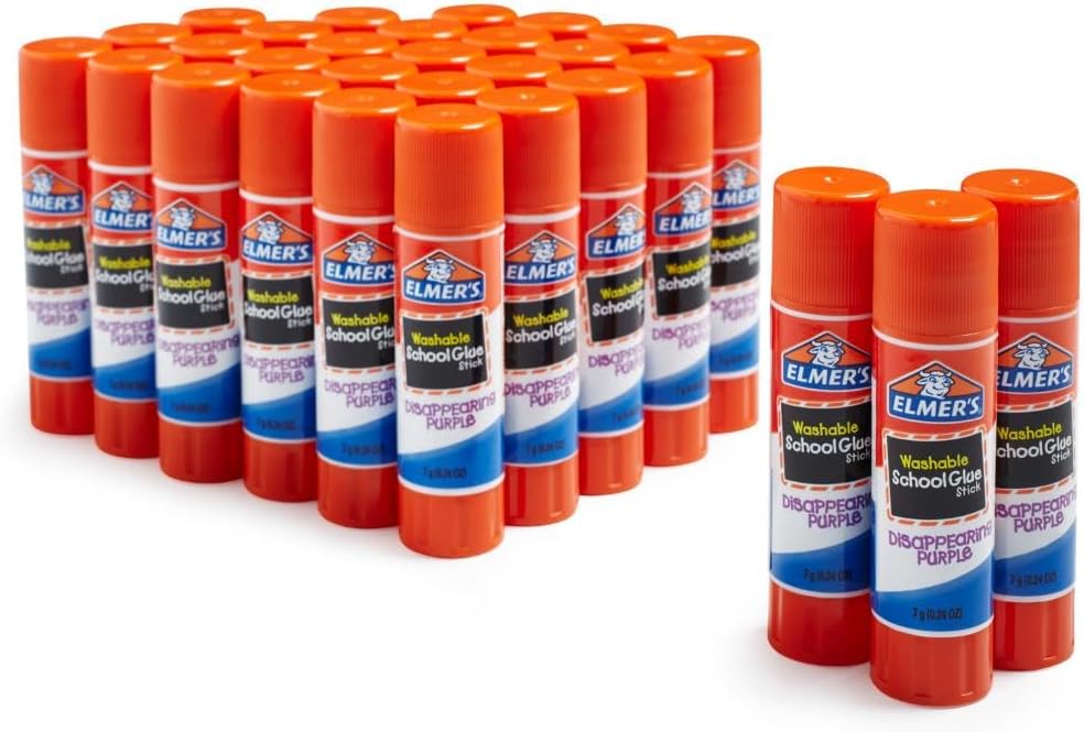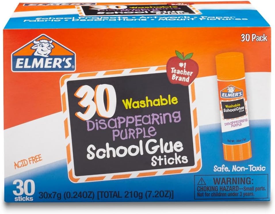 דבק סגול נעלם של אלמרס לבית הספר, רחיצים, 7 גרם, 30 יחידות - פוסטר, לוח חזון, חזרה לבית הספר, אריזה גדולה לכיתות, מותג המורים מספר 1