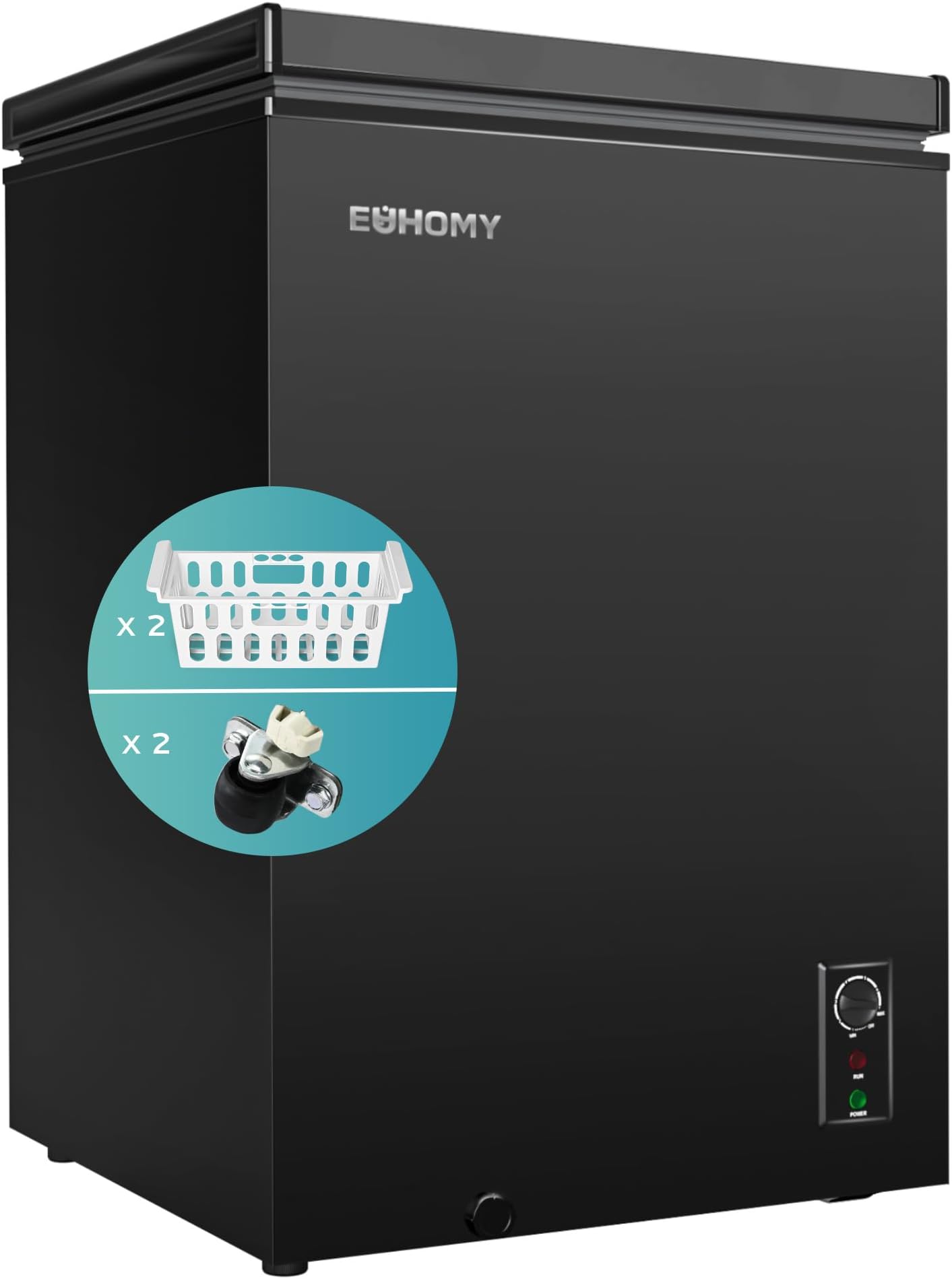 מקפיא חזה EUHOMY 3.5 רגל מעוקב עם גלגלים, מקפיא עמוק קטן מתכוונן 7 תרמוסטט, מקפיא מיני שקט עצמאי דלת עליונה, חיסכון באנרגיה לדירה/מוסך/מרתף/מעונות/בית, חדש שחור